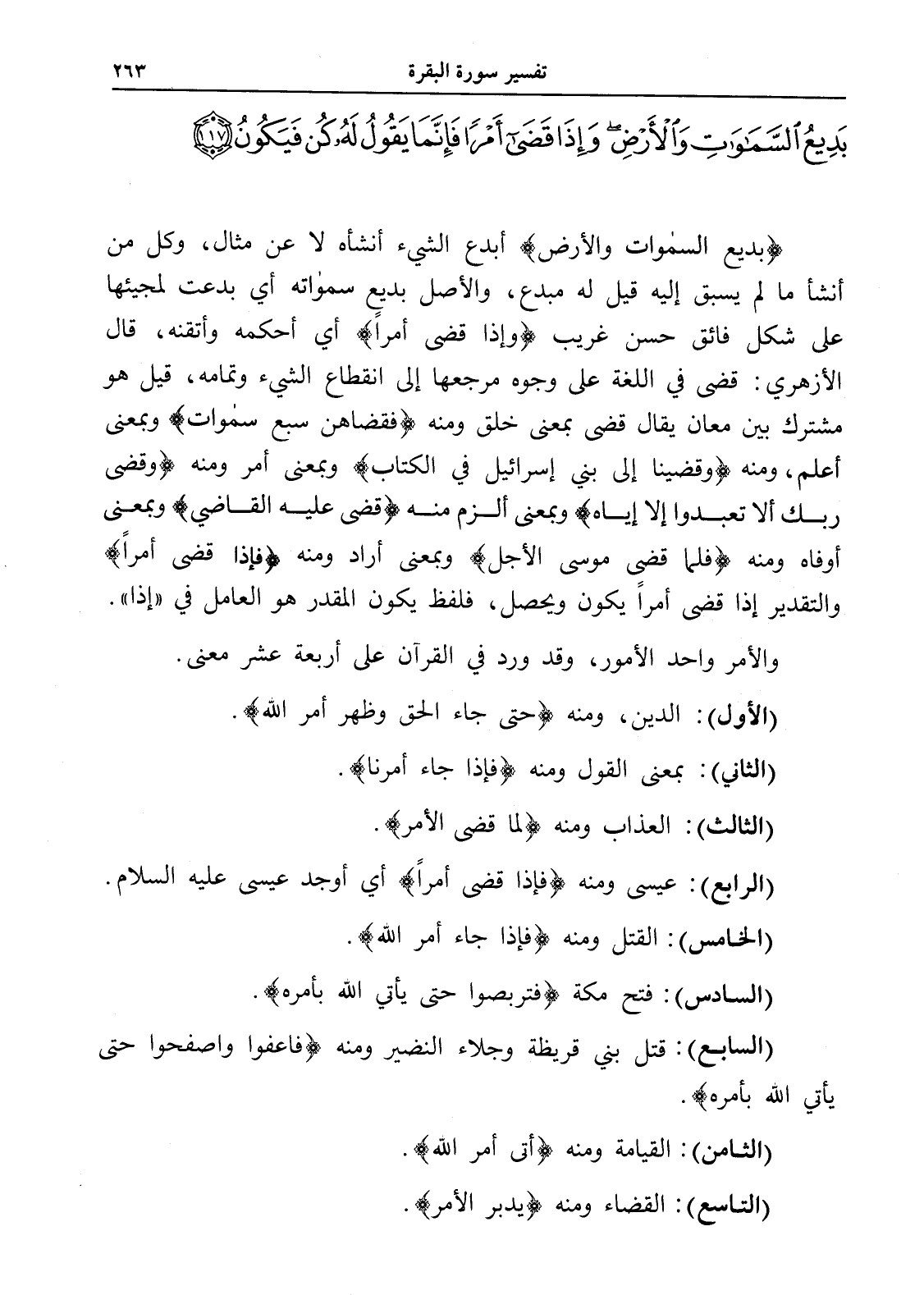 بَدِيعُ السَّمَاوَاتِ وَالْأَرْضِ وَإِذَا قَضَى أَمْرًا فَإِنَّمَا يَقُولُ لَهُ كُنْ فَيَكُونُ (117)