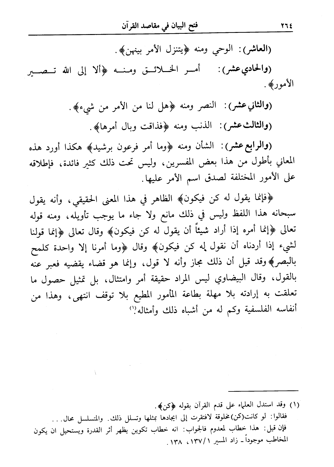 (¬1) وقد استدل العلماء على قدم القرآن بقوله (كن).
