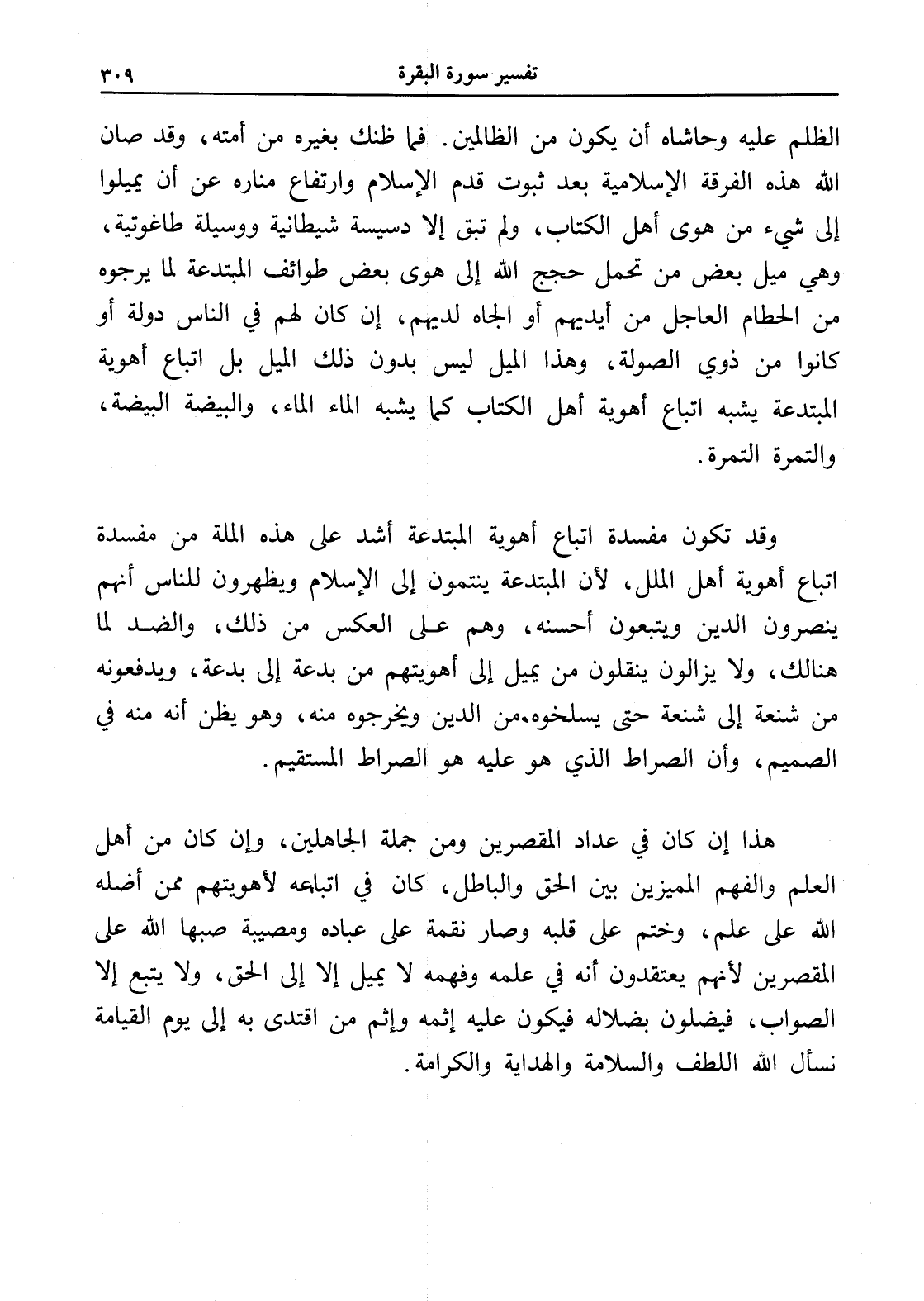 الظلم عليه وحاشاه أن يكون من الظالمين. فما ظنك بغيره من أمته، وقد صان الله هذه الفرقة الإسلامية بعد ثبوت قدم الإسلام وارتفاع مناره عن أن يميلوا إلى شيء من هوى أهل الكتاب، ولم تبق إلا دسيسة شيطانية ووسيلة طاغوتية، وهي ميل بعض من تحمل حجج الله إلى هوى بعض طوائف المبتدعة لما يرجوه من الحطام العاجل من أيديهم أو الجاه لديهم، إن كان لهم في الناس دولة أو كانوا من ذوي الصولة، وهذا الميل ليس بدون ذلك الميل بل اتباع أهوية المبتدعة يشبه اتباع أهوية أهل الكتاب كما يشبه الماء الماء، والبيضة البيضة، والتمرة التمرة.