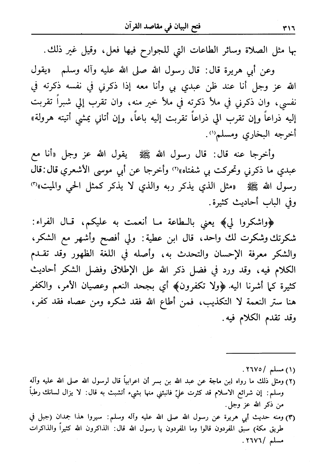 وعن أبي هريرة قال: قال رسول الله صلى الله عليه وآله وسلم " يقول الله عز وجل أنا عند ظن عبدي بي وأنا معه إذا ذكرني في نفسه ذكرته في نفسي، وإن ذكرني في ملأ ذكرته في ملأ خير منه، وإن تقرب إلي شبراً تقربت إليه ذراعاً وإن تقرب إلي ذراعاً تقربت إليه باعاً، وإن أتاني يمشي أتيته هرولة " أخرجه البخاري ومسلم (¬1).