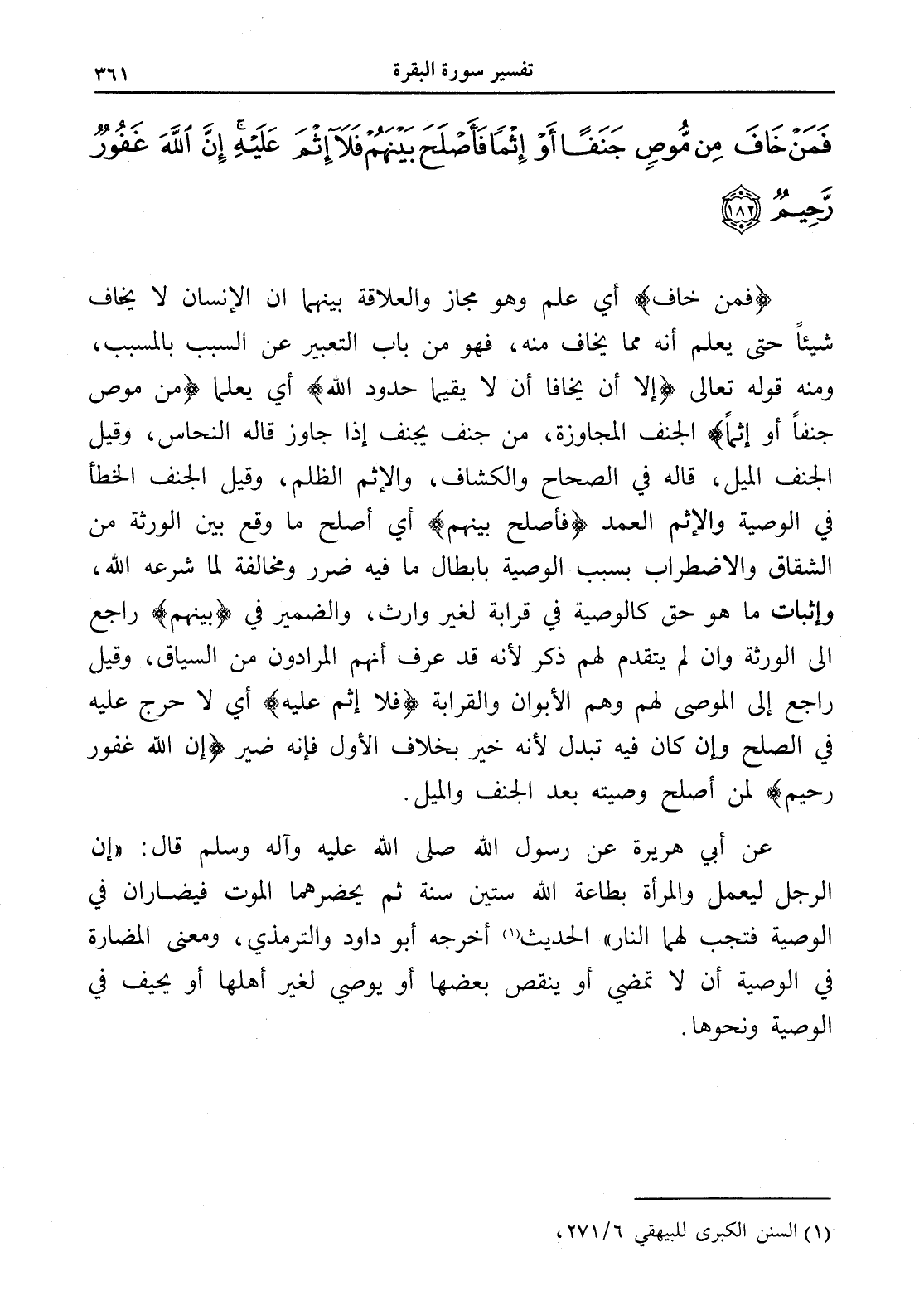 فَمَنْ خَافَ مِنْ مُوصٍ جَنَفًا أَوْ إِثْمًا فَأَصْلَحَ بَيْنَهُمْ فَلَا إِثْمَ عَلَيْهِ إِنَّ اللَّهَ غَفُورٌ رَحِيمٌ (182)