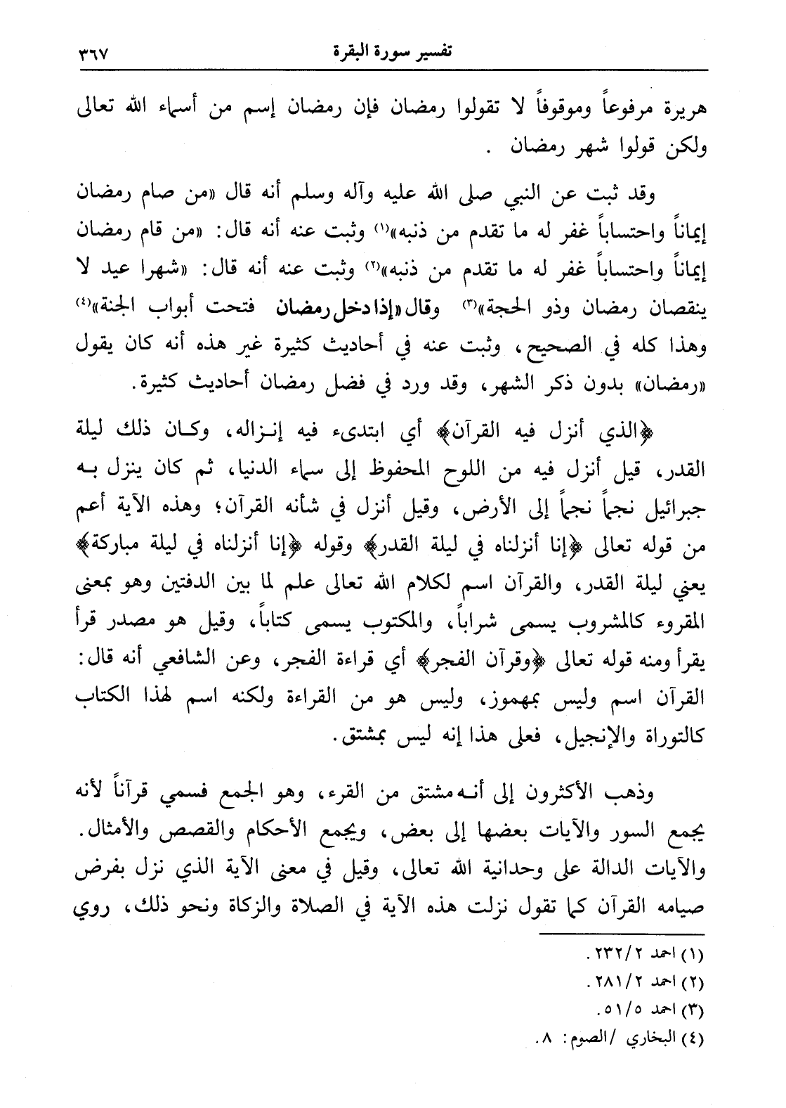 وقد ثبت عن النبي صلى الله عليه وآله وسلم أنه قال " من صام رمضان إيماناً واحتساباً غفر له ما تقدم من ذنبه " (¬1) وثبت عنه أنه قال: " من قام رمضان إيماناً واحتساباً غفر له ما تقدم من ذنبه " (¬2) وثبت عنه أنه قال: " شهرا عيد لا ينقصان رمضان وذو الحجة " (¬3) وقال " إذا دخل رمضان فتحت أبواب الجنة " (¬4) وهذا كله في الصحيح، وثبت عنه في أحاديث كثيرة غير هذه أنه كان يقول " رمضان " بدون ذكر الشهر، وقد ورد في فضل رمضان أحاديث كثيرة.