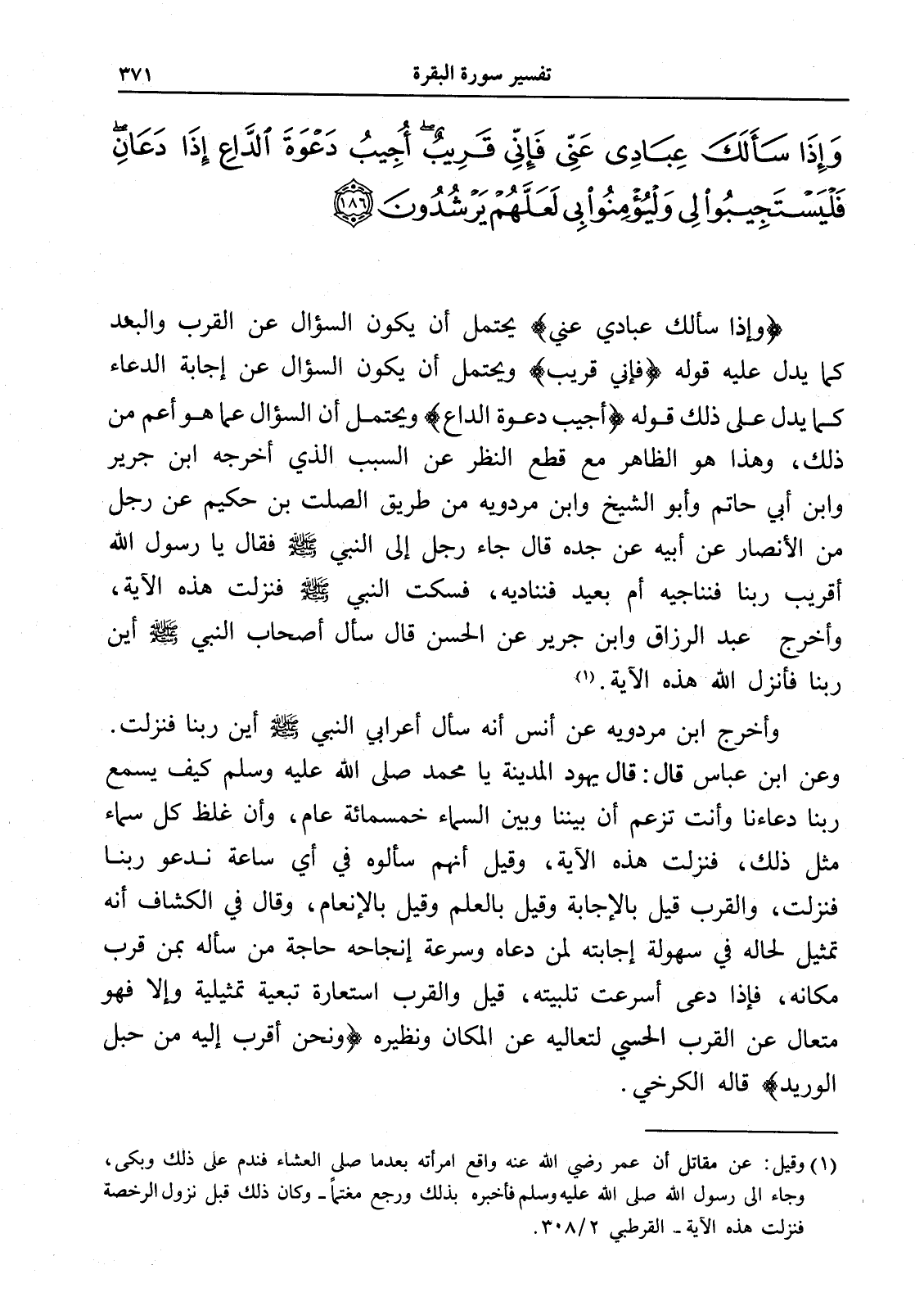 وَإِذَا سَأَلَكَ عِبَادِي عَنِّي فَإِنِّي قَرِيبٌ أُجِيبُ دَعْوَةَ الدَّاعِ إِذَا دَعَانِ فَلْيَسْتَجِيبُوا لِي وَلْيُؤْمِنُوا بِي لَعَلَّهُمْ يَرْشُدُونَ (186)