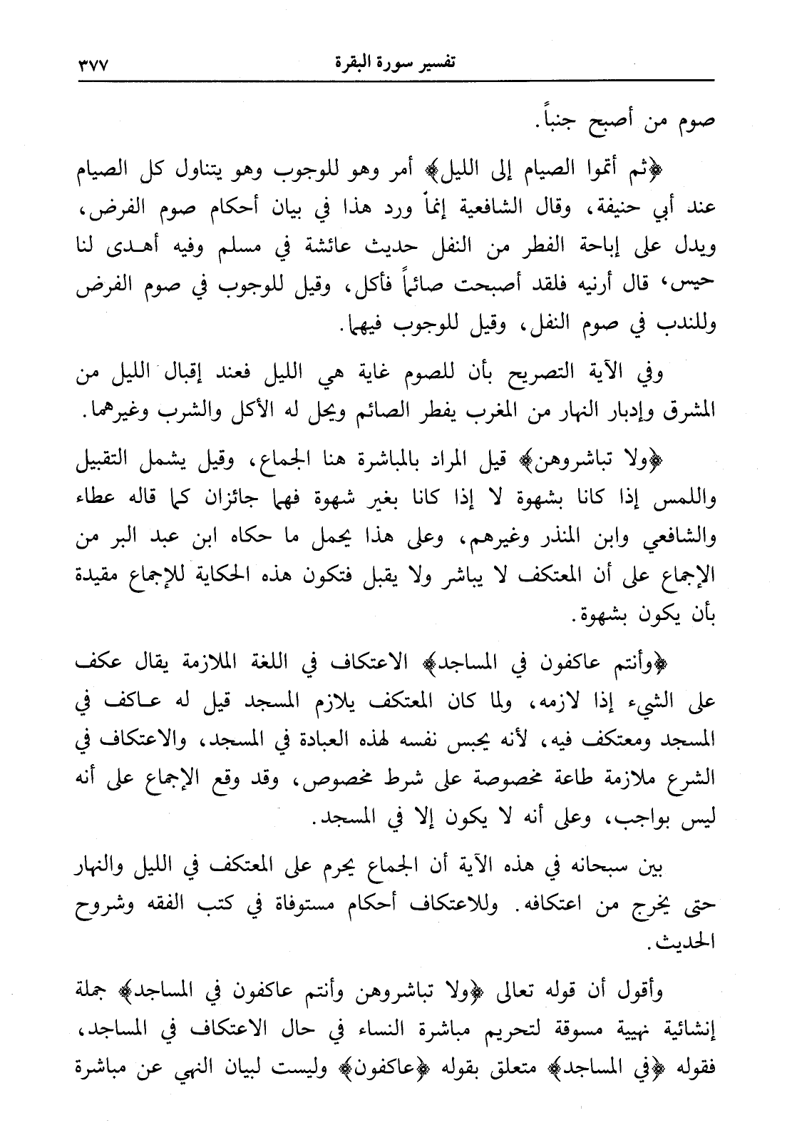 بين سبحانه في هذه الآية أن الجماع يحرم على المعتكف في الليل والنهار حتى يخرج من اعتكافه. وللاعتكاف أحكام مستوفاة في كتب الفقه وشروح الحديث.