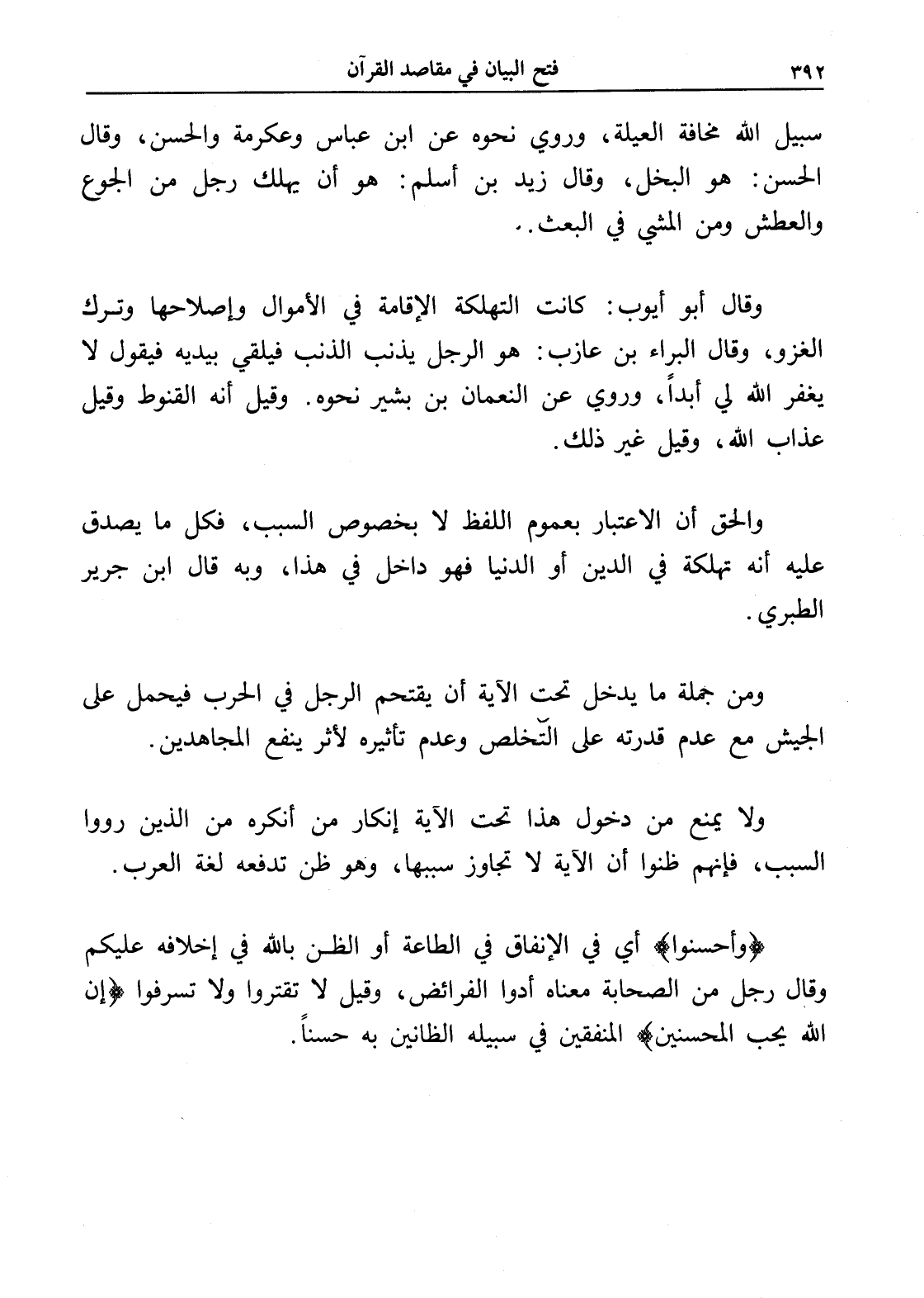 (وأحسنوا) أي في الإنفاق في الطاعة أو الظن بالله في إخلافه عليكم وقال رجل من الصحابة معناه أدوا الفرائض، وقيل لا تقتروا ولا تسرفوا (إن الله يحب المحسنين) المنفقين في سبيله الظانين به حسناً.