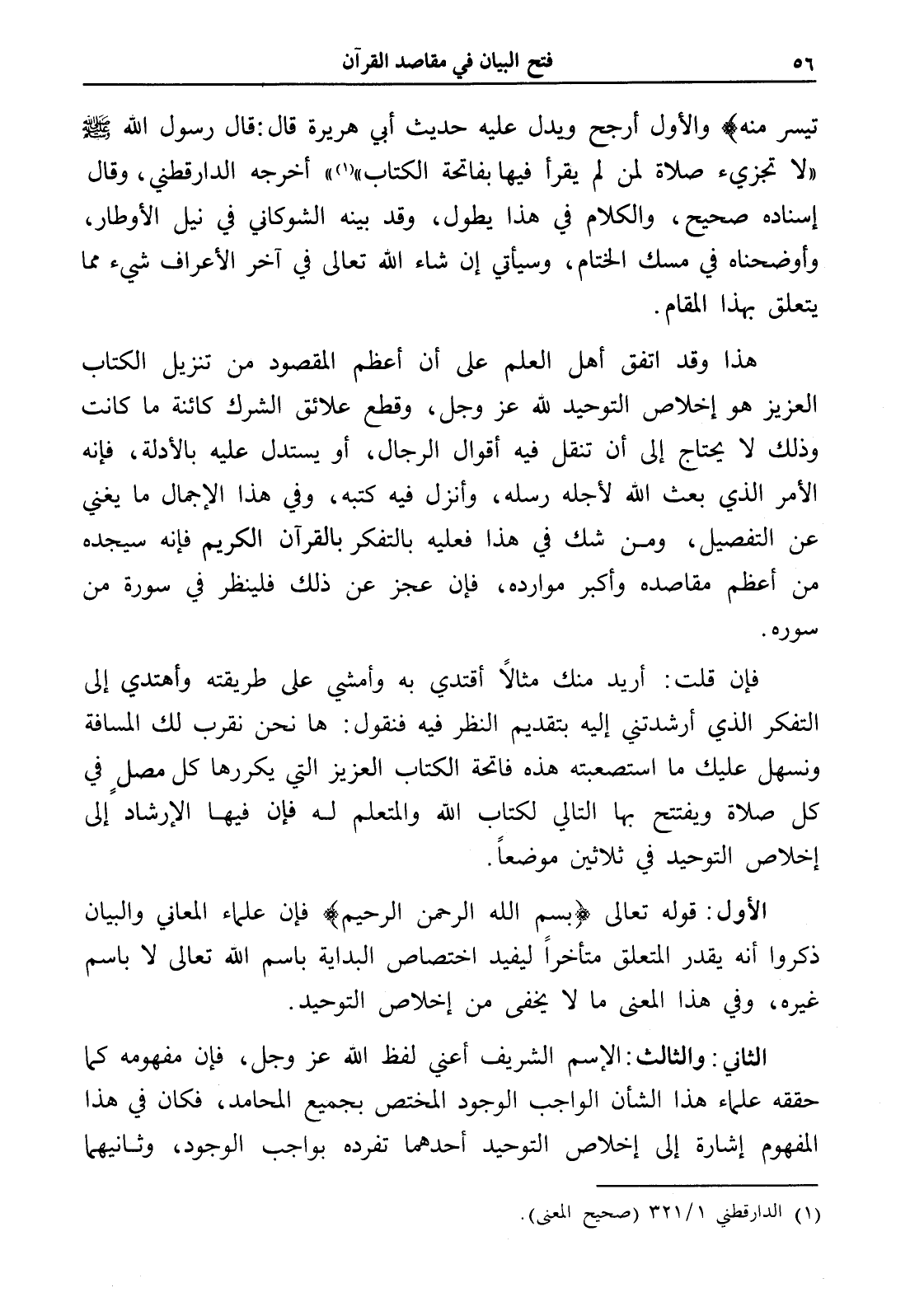هذا وقد اتفق أهل العلم على أن أعظم المقصود من تنزيل الكتاب العزيز هو إخلاص التوحيد لله عز وجل، وقطع علائق الشرك كائنة ما كانت وذلك لا يحتاج إلى أن تنقل فيه أقوال الرجال، أو يستدل عليه بالأدلة، فإنه الأمر الذي بعث الله لأجله رسله، وأنزل فيه كتبه، وفي هذا الإجمال ما يغني عن التفصيل، ومن شك في هذا فعليه بالتفكر بالقرآن الكريم فإنه سيجده من أعظم مقاصده وأكبر موارده، فإن عجز عن ذلك فلينظر في سورة من سوره.
