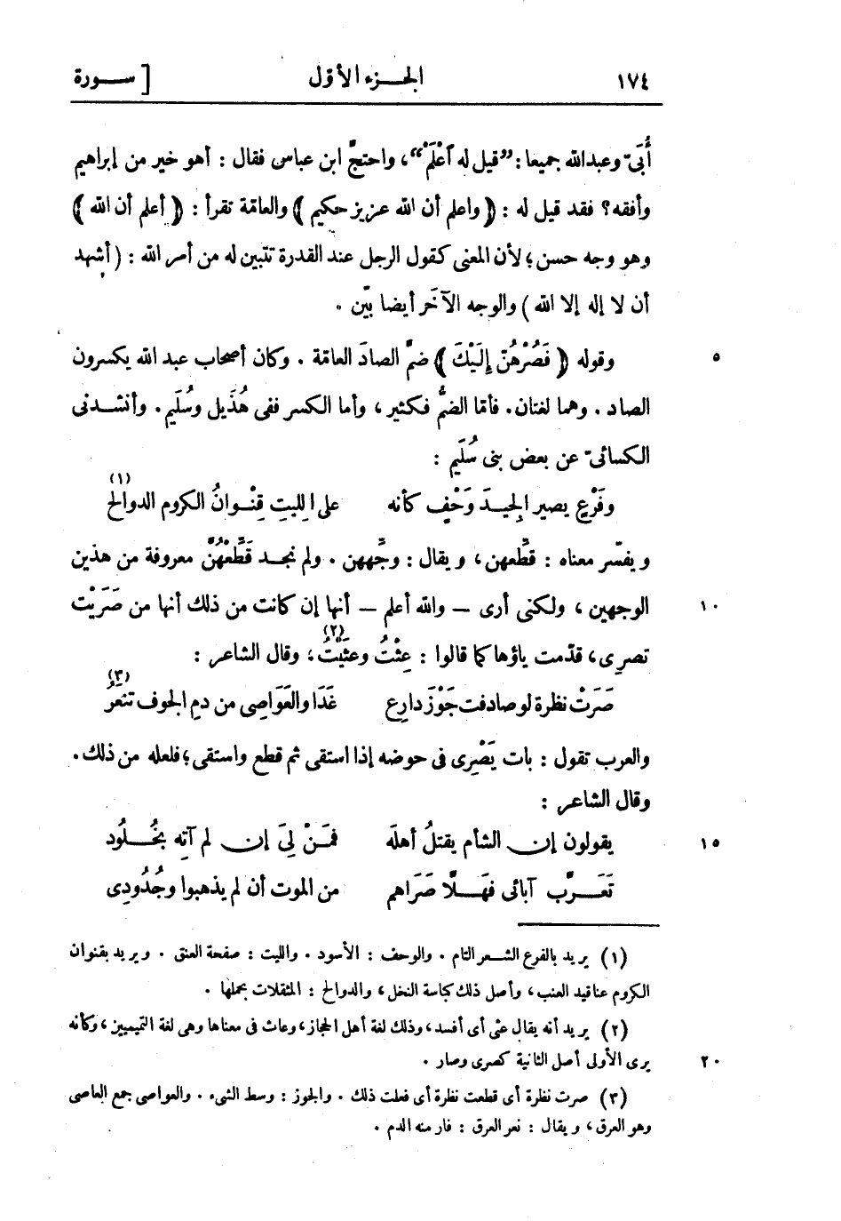 وقوله فَصُرْهُنَّ إِلَيْكَ ضم الصاد العامة. وكان أصحاب عَبْد اللَّه يكسرون الصاد. وهما لغتان. فأما الضم فكثير، وأما الكسر ففي هذيل وسليم. وأنشدني الكسائي عن بعض بني سليم: