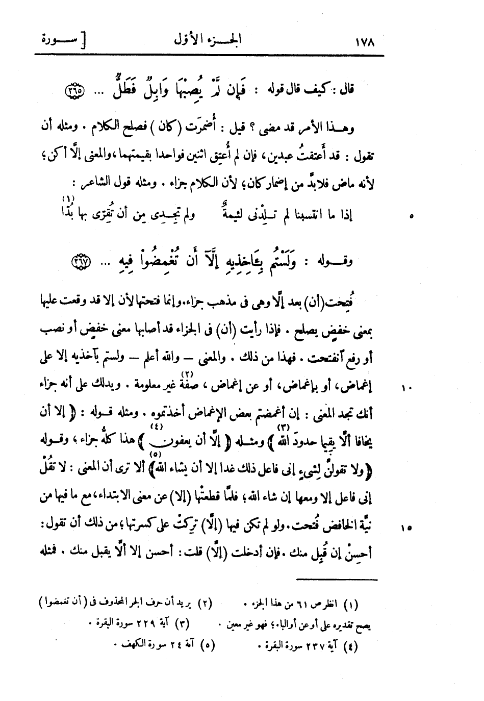 (2) يريد أن حرف الجر المحذوف فى (أن تغمضوا) يصح تقديره على أو عن أو الباء فهو غير معين.