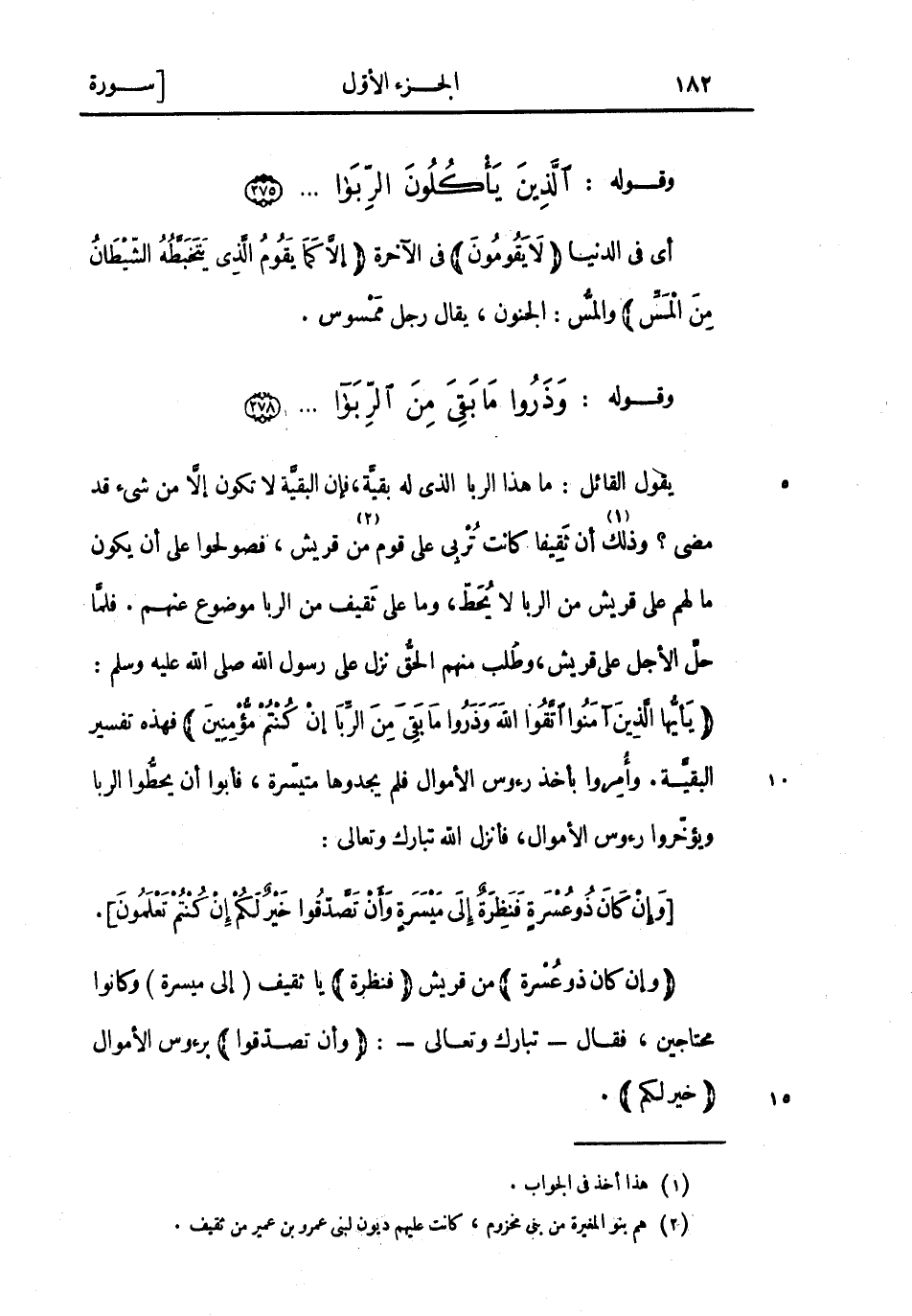 وَإِنْ كانَ ذُو عُسْرَةٍ من قريش فَنَظِرَةٌ يا ثقيف (إلى ميسرة) وكانوا محتاجين، فقال- تبارك وتعالى-: وَأَنْ تَصَدَّقُوا برءوس الأموال خَيْرٌ لَكُمْ.