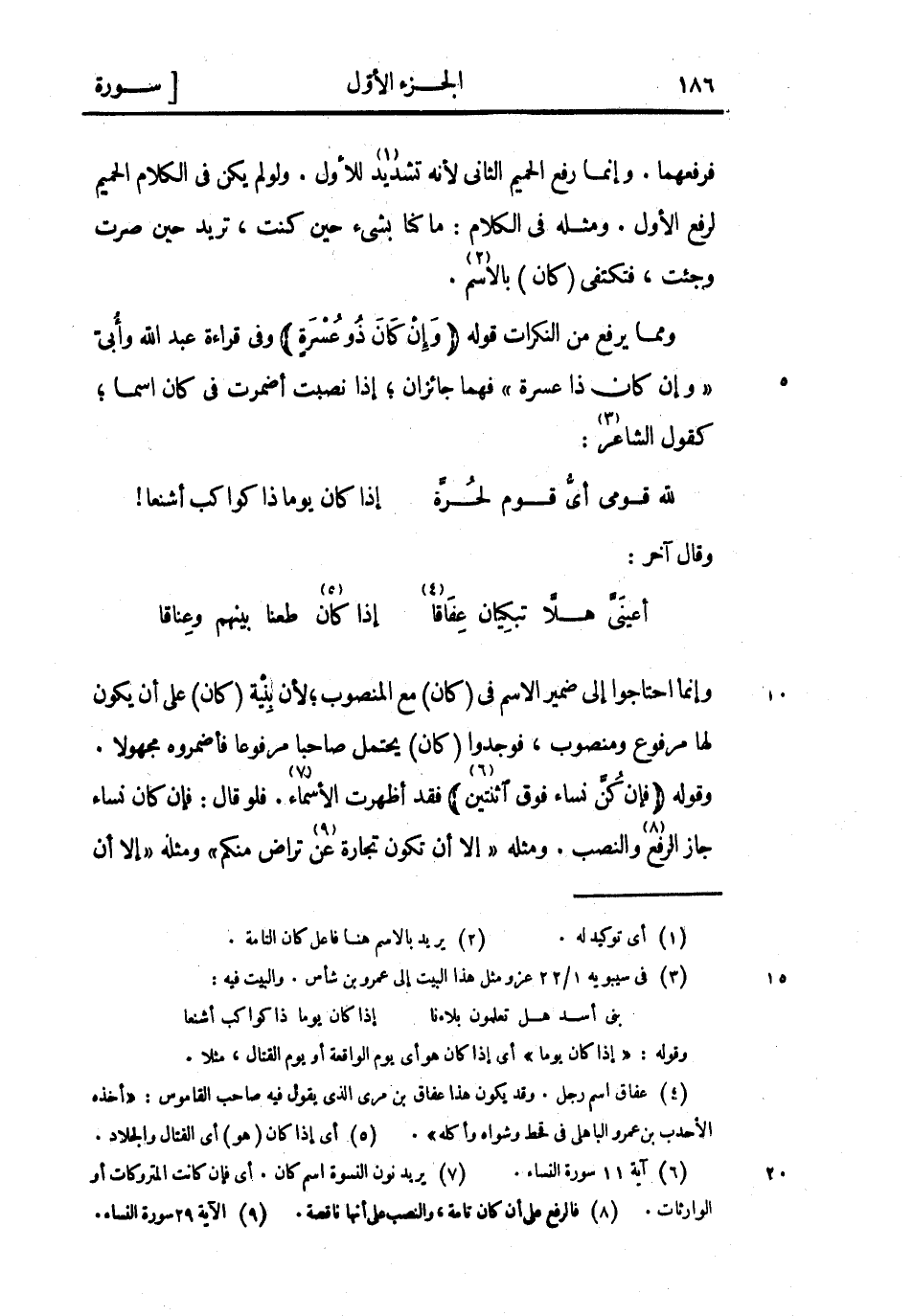 (7) يريد نون النسوة اسم كان. أى فإن كانت المتروكات أو الوارثات.