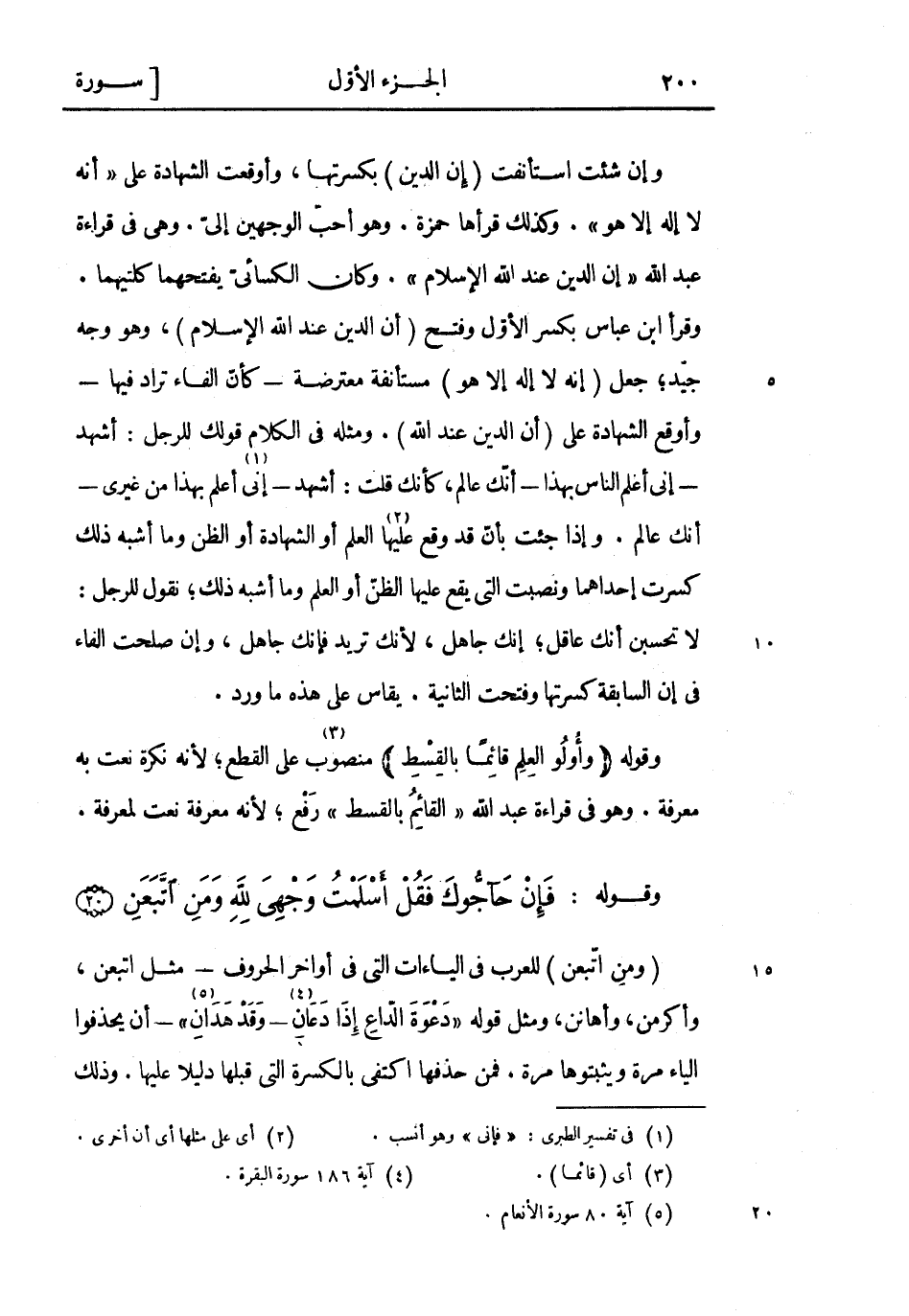 وقوله: فَإِنْ حَاجُّوكَ فَقُلْ أَسْلَمْتُ وَجْهِيَ لِلَّهِ وَمَنِ اتَّبَعَنِ (20) (ومن اتبعن) للعرب فِي الياءات التي فِي أواخر الحروف- مثل اتبعن، وأكرمن، وأهانن، ومثل قوله «دَعْوَةَ الدَّاعِ إِذا دَعانِ «4» - وَقَدْ هَدانِ» «5» - أن يحذفوا الياء مرة ويثبتوها مرة. فمن حذفها اكتفى بالكسرة التي قبلها دليلا عليها. وذلك