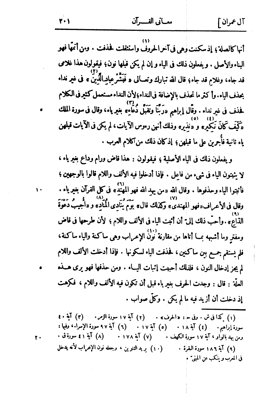 ويفعلون ذلك فِي الياء الاصلية فيقولون: هذا قاض ورام وداع بغير ياء، لا يثبتون الياء فِي شيء من فاعل. فإذا أدخلوا فِيه الألف واللام قَالُوا بالوجهين فأثبتوا الياء وحذفوها. وقال الله «مَنْ يَهْدِ اللَّهُ فَهُوَ الْمُهْتَدِ» «6» فِي كل القرآن بغير ياء.