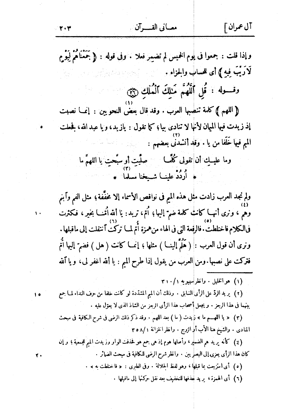 ونرى أن قول العرب: (هلم إلينا) مثلها إنما كانت (هَلْ) فضم إليها أم فتركت على نصبها. ومن العرب من يقول إذا طرح الميم: يا الله اغفر لى، ويا الله