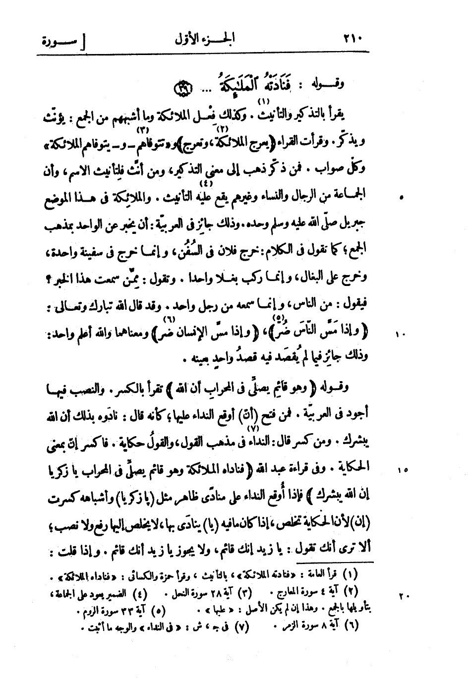 (1) قرأ العامة: «فنادته الملائكة» ، بالتأنيث، وقرأ حمزة والكسائي: «فناداه الملائكة» .