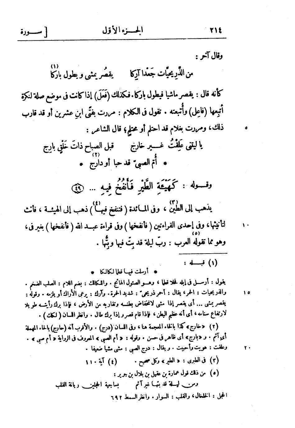 (2) «خارج» كذا بالخاء المعجمة هنا، وفى اللسان (درج) . والأقرب أنه (حارج) بالحاء المهملة أي آثم. و «بارج» أي ظاهر فى حسن. وقوله: «أم الصبى» المعروف فى الرواية «أم صبى» .