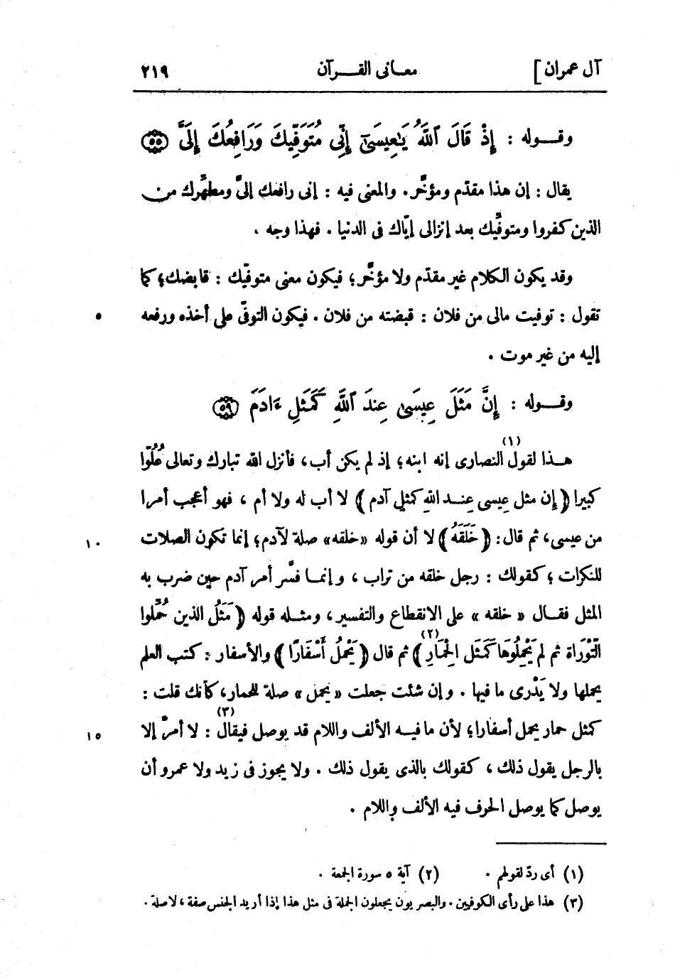 وقوله: إِذْ قالَ اللَّهُ يَا عِيسى إِنِّي مُتَوَفِّيكَ وَرافِعُكَ إِلَيَّ (55) يقال: إن هذا مقدم ومؤخر. والمعنى فِيهِ: إني رافعك إلى ومطهرك من الذين كفروا ومتوفيك بعد إنزالي إياك فِي الدنيا. فهذا وجه.