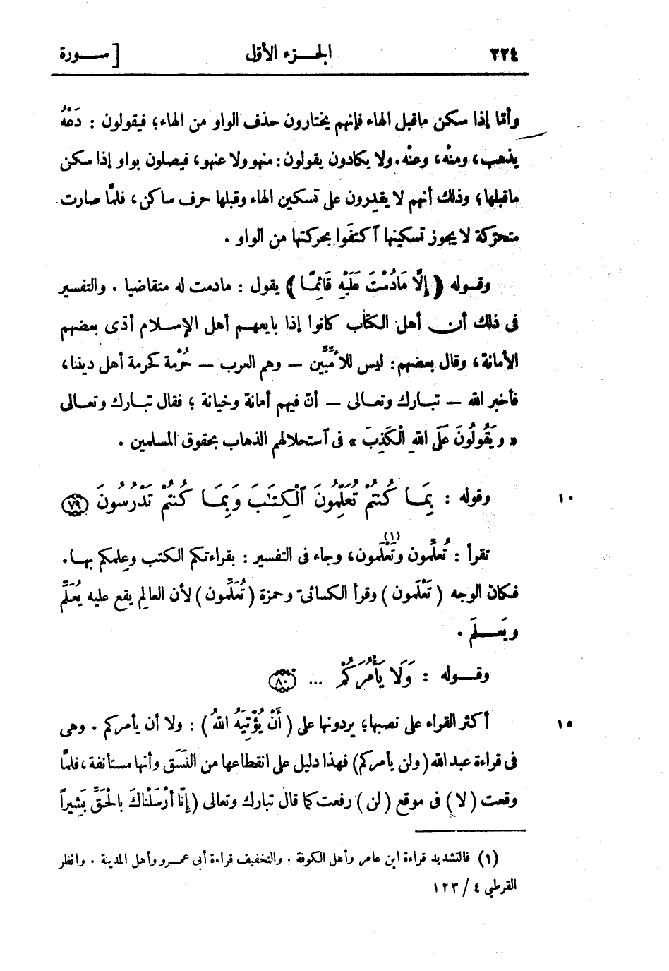 وقوله: بِما كُنْتُمْ تُعَلِّمُونَ الْكِتابَ وَبِما كُنْتُمْ تَدْرُسُونَ (79) تقرأ: تعلّمون و «1» تعلمون، وجاء فِي التفسير: بقراءتكم الكتب وعلمكم بها.