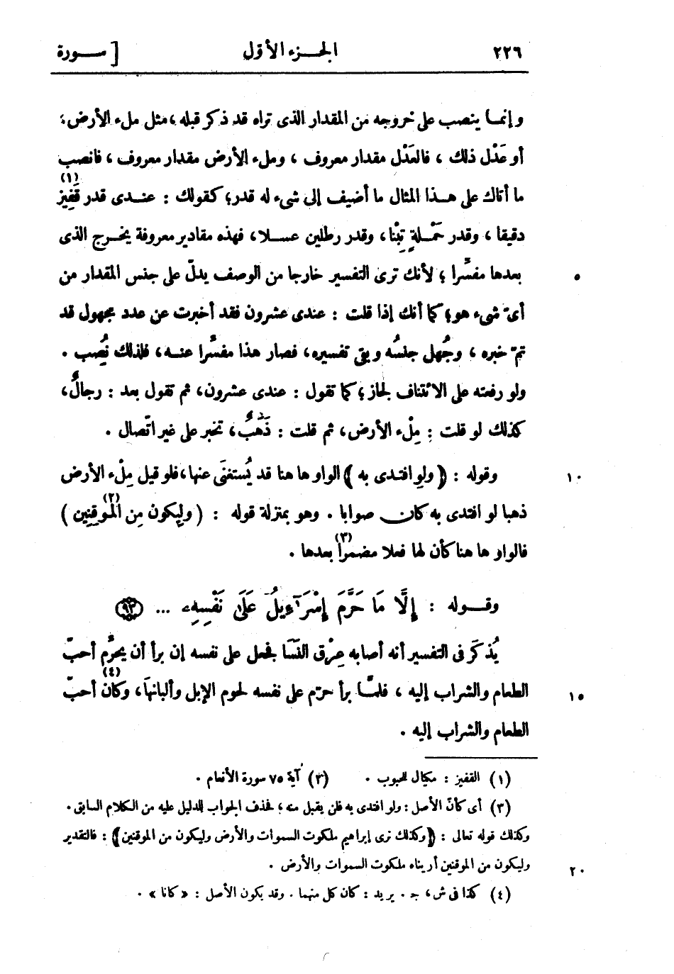 ولو رفعته على الائتناف لجاز كما تقول: عندي عشرون، ثُمَّ تقول بعد: رجال، كذلك لو قلت: ملء الأرض، ثُمَّ قلت: ذهب، تخبر على غير اتصال.