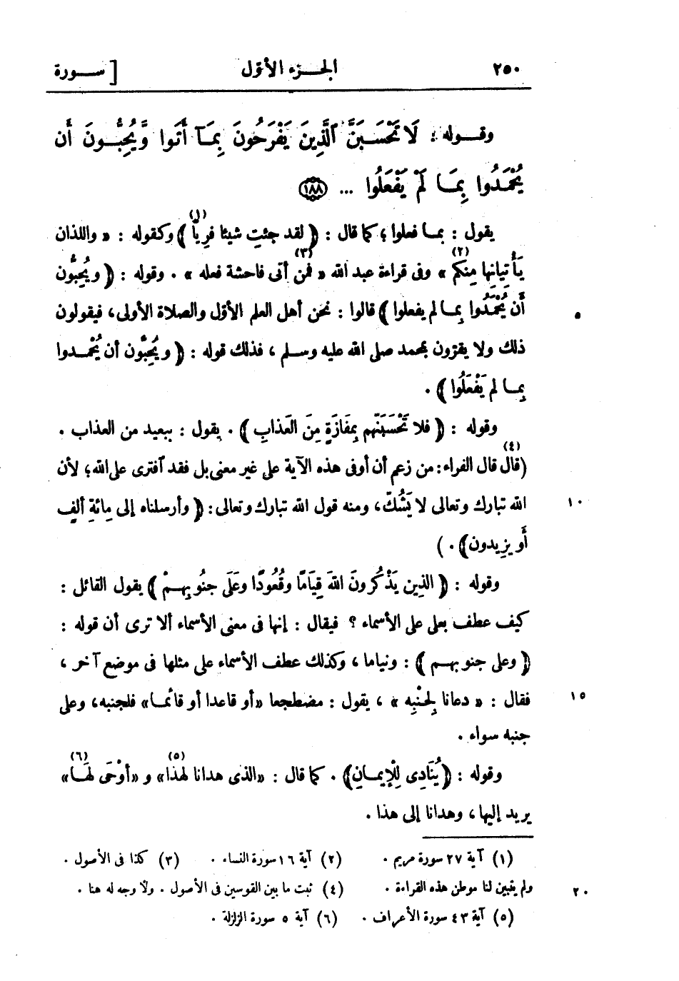 وقوله: لا تَحْسَبَنَّ الَّذِينَ يَفْرَحُونَ بِما أَتَوْا وَيُحِبُّونَ أَنْ يُحْمَدُوا بِما لَمْ يَفْعَلُوا ... (188)