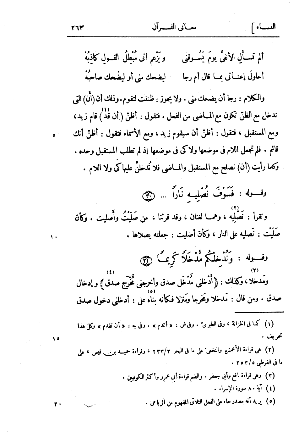 وقوله: وَنُدْخِلْكُمْ مُدْخَلًا كَرِيماً (31) ومدخلا «3» ، وكذلك: أَدْخِلْنِي مُدْخَلَ صِدْقٍ وَأَخْرِجْنِي مُخْرَجَ صِدْقٍ «4» وإدخال صدق. ومن قال: مدخلا ومخرجا ومنزلا فكأنه بناه «5» على: أدخلنى دخول صدق