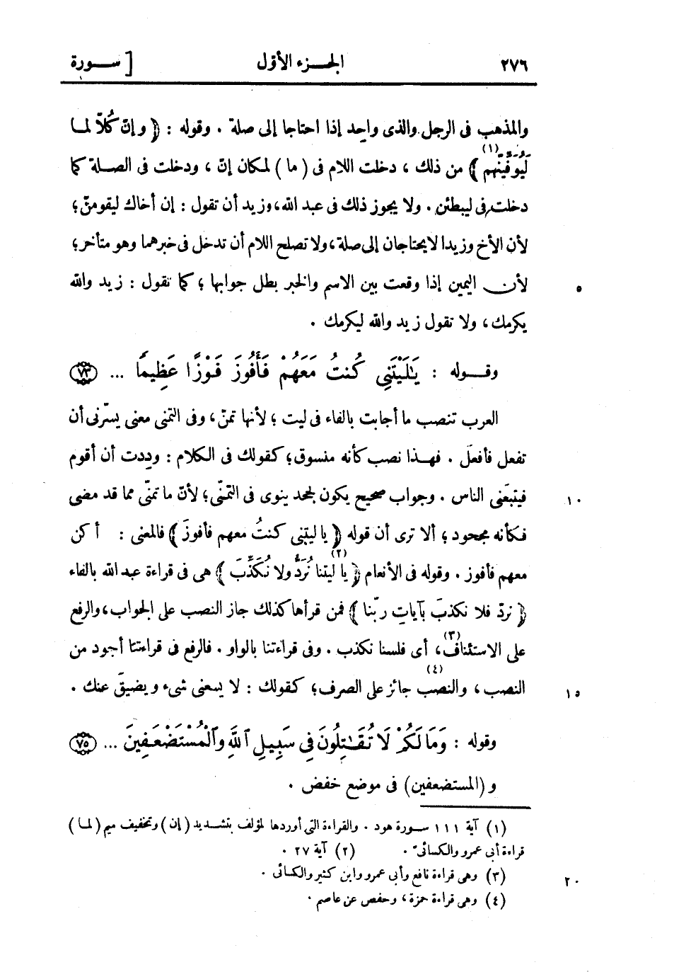 (1) آية 111 سورة هود. والقراءة التي أوردها لمؤلف بتشديد (إن) وتخفيف ميم (لما) قراءة أبى عمرو والكسائىّ.
