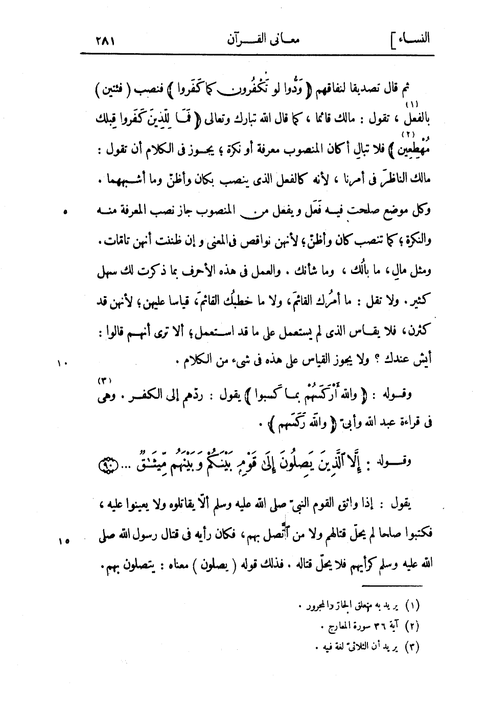ثُمَّ قال تصديقا لنفاقهم وَدُّوا لَوْ تَكْفُرُونَ كَما كَفَرُوا فنصب (فئتين) بالفعل «1» ، تقول: مالك قائما، كما قال اللَّه تبارك وتعالى فَمالِ الَّذِينَ كَفَرُوا قِبَلَكَ مُهْطِعِينَ «2» فلا تبال أكان المنصوب معرفة أو نكرة يجوز فى الكلام أن تقول: