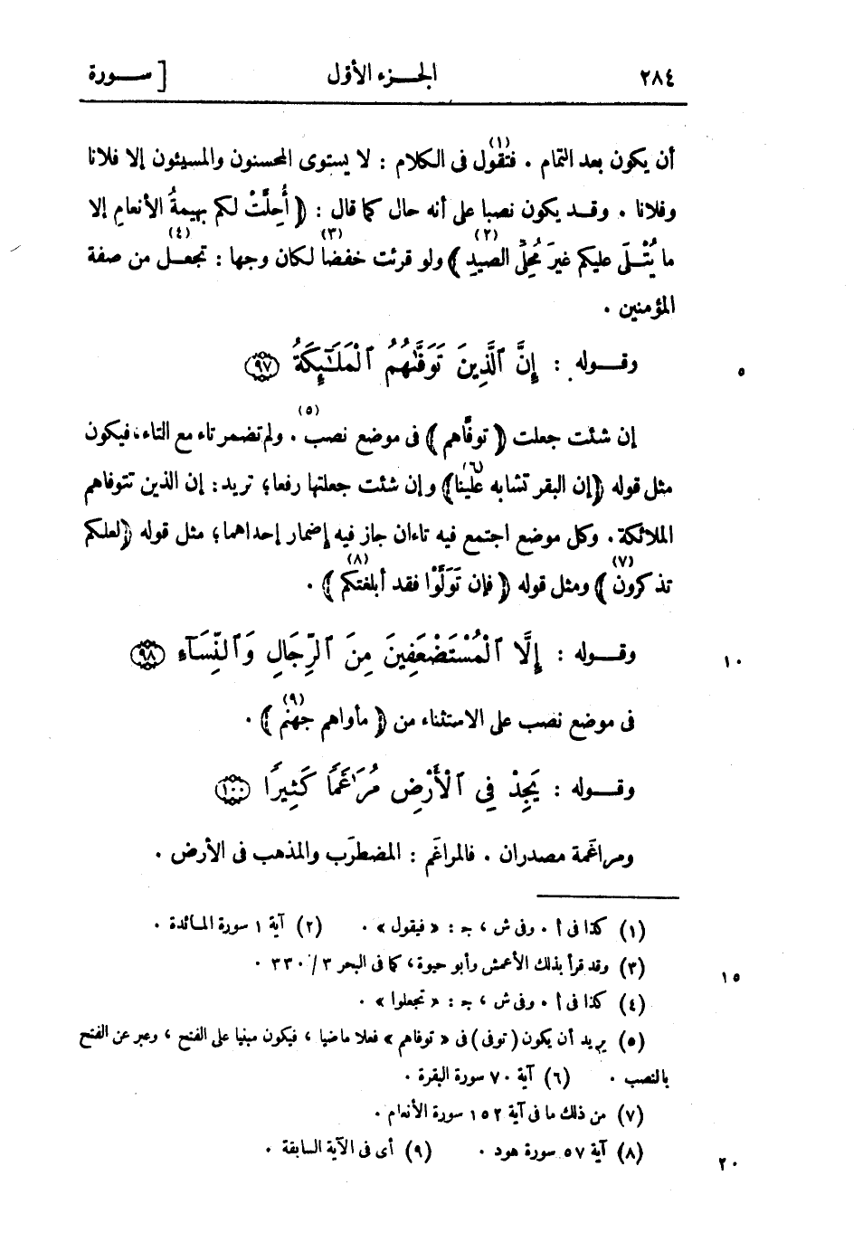 (5) يريد أن يكون (توفى) فى «توفاهم» فعلا ماضيا، فيكون مبنيا على الفتح، وعبر عن الفتح بالنصب.