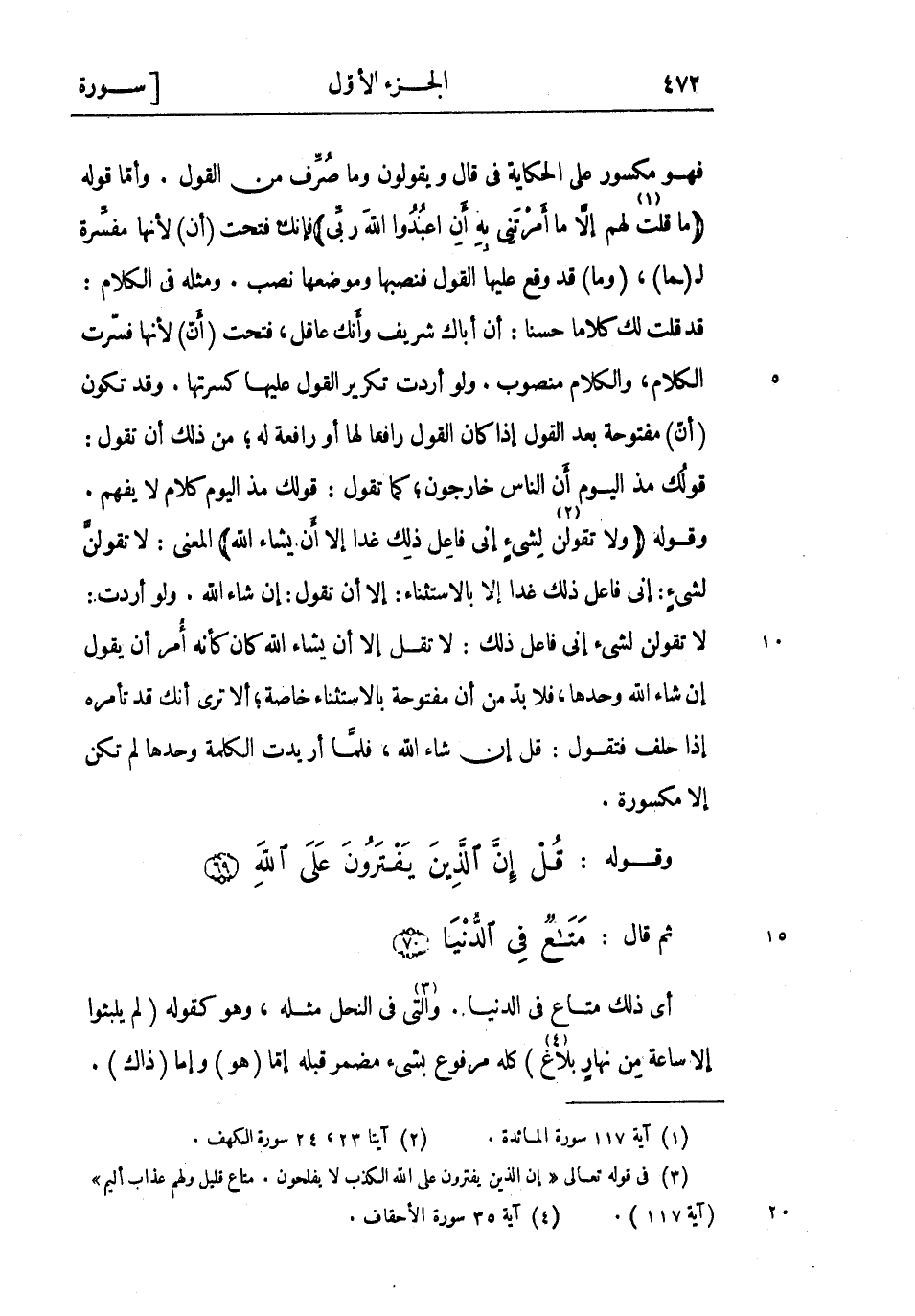 (3) فى قوله تعالى «إِنَّ الَّذِينَ يَفْتَرُونَ عَلَى اللَّهِ الْكَذِبَ لا يفلحون. متاع قليل ولهم عذاب أليم» (آية 117) .