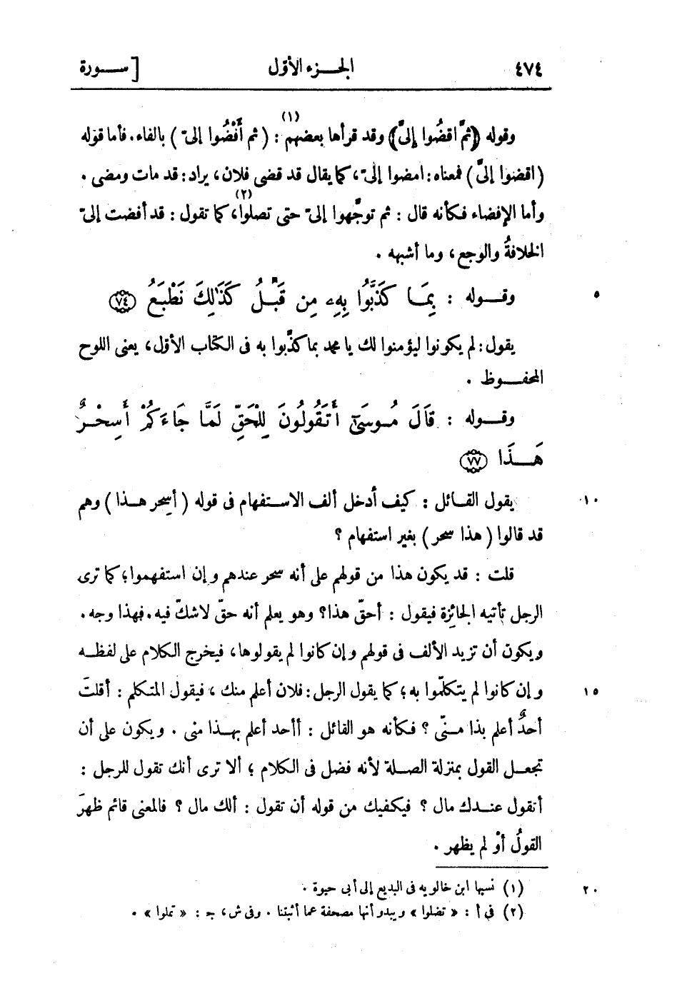 وقوله: قالَ مُوسى أَتَقُولُونَ لِلْحَقِّ لَمَّا جاءَكُمْ أَسِحْرٌ هذا (77) يقول القائل: كيف أدخل ألف الاستفهام فِي قوله (أسحر هذا) وهم قد قالوا (هَذَا سِحْرٌ) بغير استفهام؟