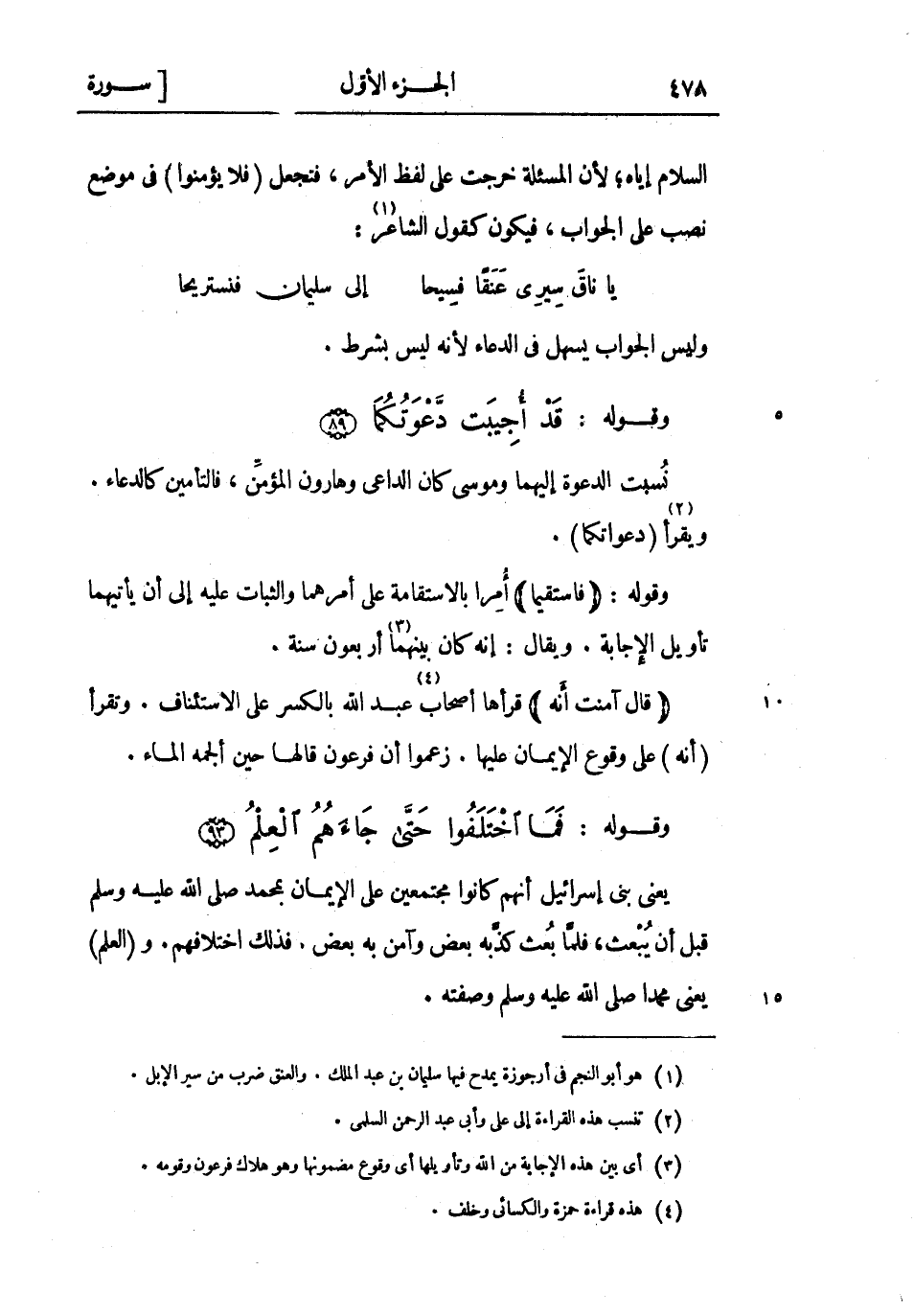 وقوله: قَدْ أُجِيبَتْ دَعْوَتُكُما (89) نُسبت الدعوة إليهما وموسى كَانَ الداعي وهارون المؤمّن، فالتأمين كالدعاء.