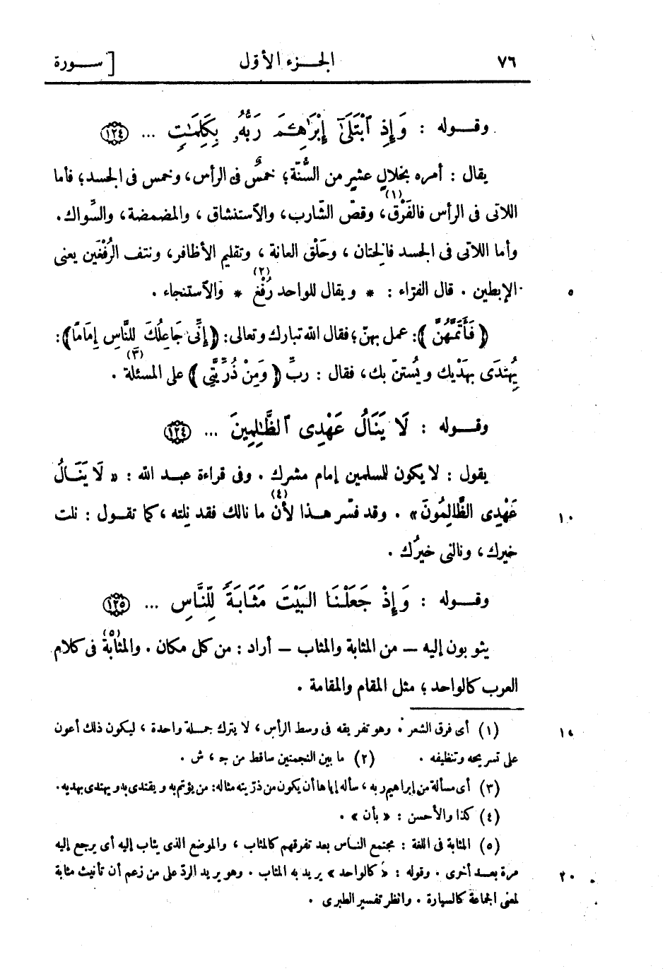 (5) المثابة فى اللغة: مجتمع الناس بعد تفرقهم كالمثاب، والموضع الذي يئاب إليه أي يرجع إليه مرة بعد أخرى. وقوله: «كالواحد» يريد به المثاب. وهو يريد الردّ على من زعم أن تأنيث مثابة لمعنى الجماعة كالسيارة. وانظر تفسير الطبري.