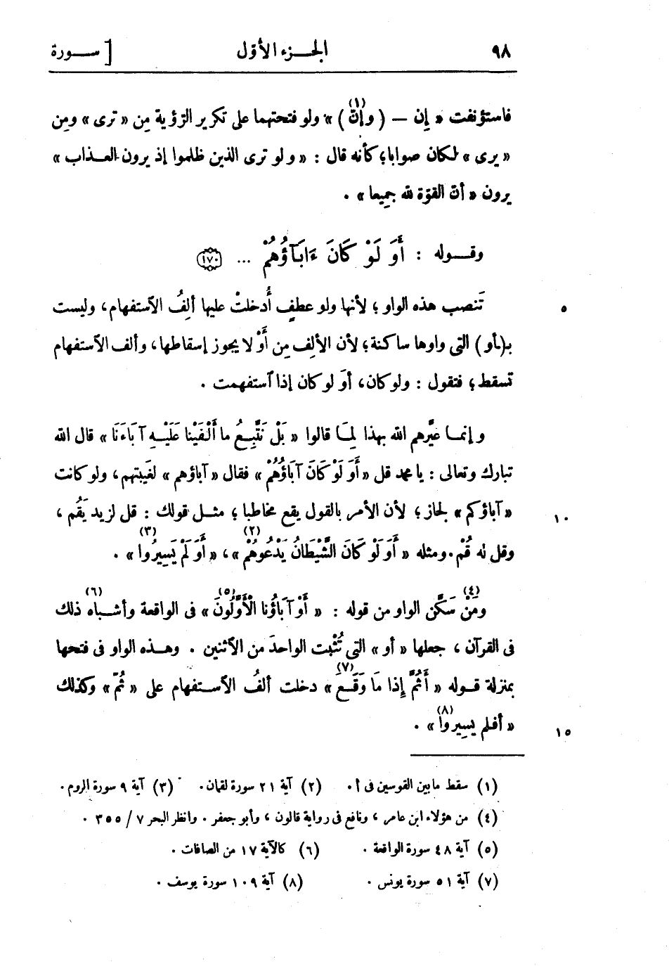 وقوله: أَوَلَوْ كانَ آباؤُهُمْ ... (170)