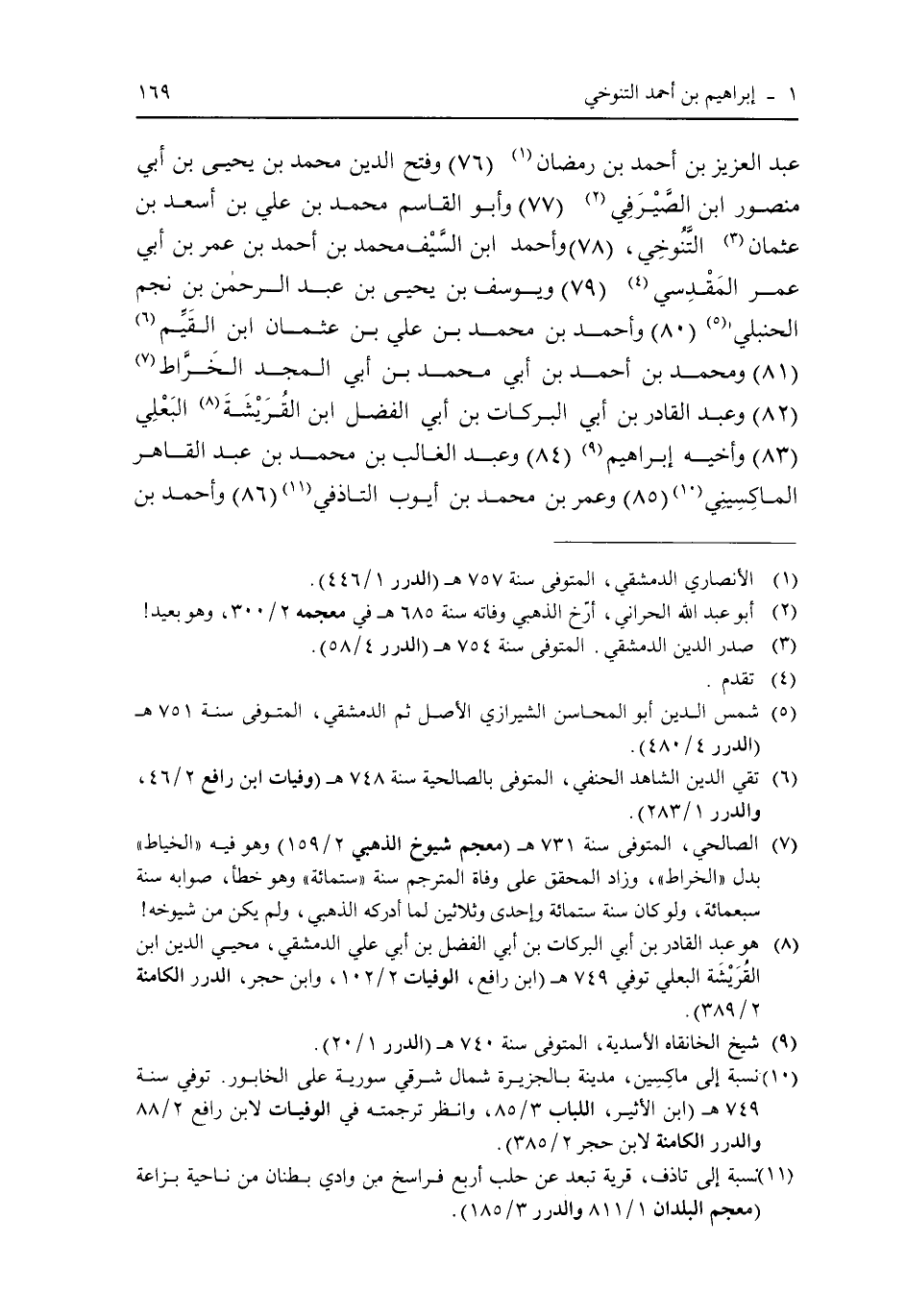 عبد العزيز بن أحمد بن رمضان (76) وفتح الدين محمد بن يحيى بن أبى منصور ابن الصيرفى (77) وأبو القاسم محمد بن على بن سعد بن عثمان التنوخى، (78) وأحمد ابن السيف محمد بن أحمد بن عمر بن أبى عمر المقدسى (79) ويوسف بن يحيى بن عبد الرحمن بن نجم الحنبلى (80) وأحمد بن محمد بن على بن عثمان ابن القيم (81) ومحمد بن أحمد بن أبى محمد بن أبى المجد الخراط (82) وعبد القادر بن أبى البركات بن أبى الفضل ابن القريشة البعلى (83) وأخيه إبراهيم (84) وعبد الغالب بن محمد بن عبد القاهر الماكسينى (85) وعمر بن محمد بن أيوب التاذفى (86) وأحمد بن
