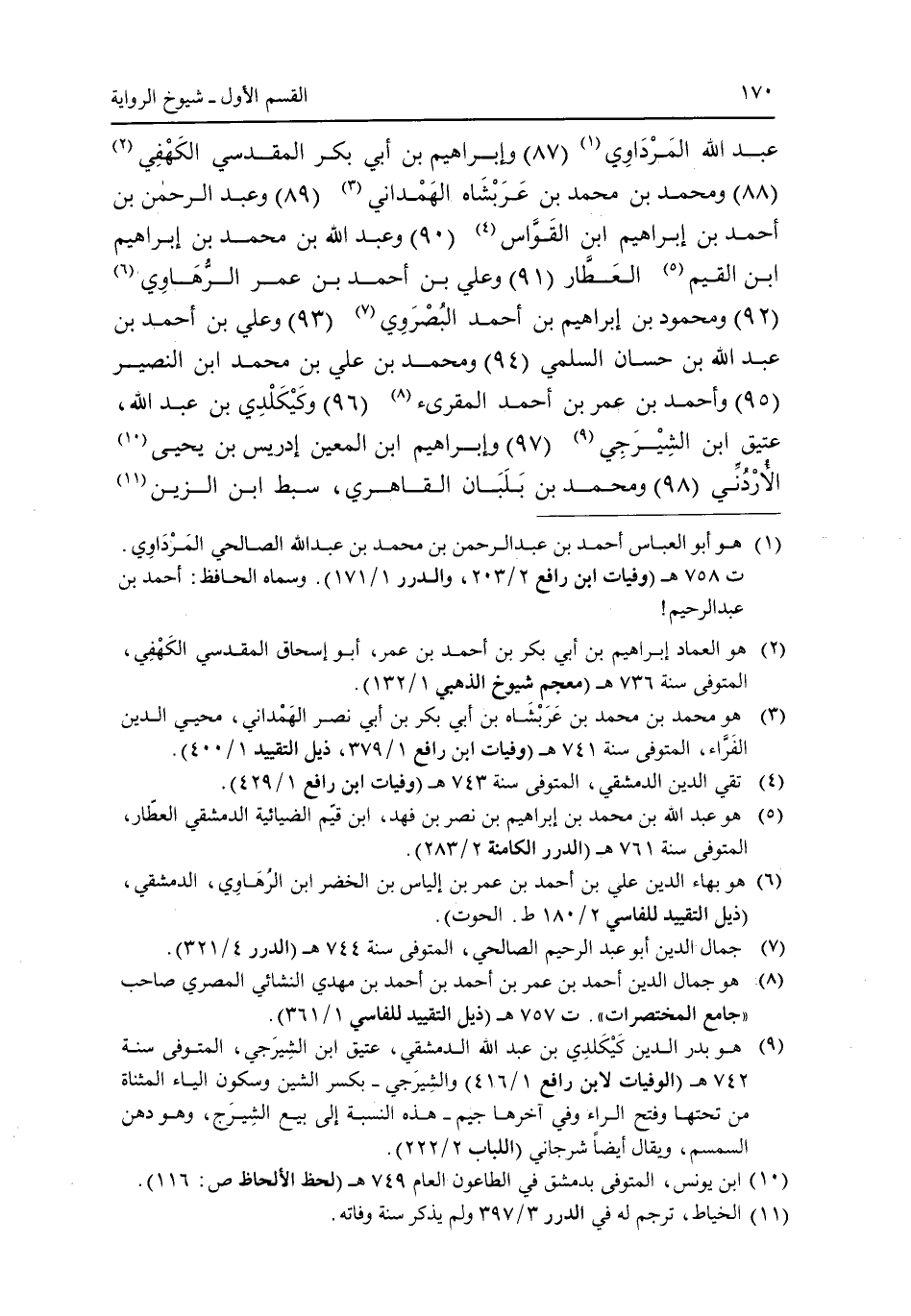 عبد الله المرداوي (87) وإبراهيم بن أبى بكر المقدسى الكهفى (88) ومحمد بن محمد بن عربشاه الهمداني (89) وعبد الرحمن بن أحمد بن إبراهيم ابن القواس (90) وعبد الله بن محمد بن إبراهيم ابن القيم العطار (91) وعلى بن أحمد بن عمر الرهاوى (92) ومحمود بن إبراهيم بن أحمد البصروى (93) وعلى بن أحمد بن عبد الله بن حسان السلمى (94) ومحمد بن على بن محمد ابن النصير (95) وأحمد بن عمر بن أحمد المقرئ (96) وكيكلدى بن عبد الله، عتيق ابن الشيرجى (97) وإبراهيم ابن المعين إدريس بن يحيى الأردنى (98) ومحمد بن بلبان القاهري، سبط ابن الزين