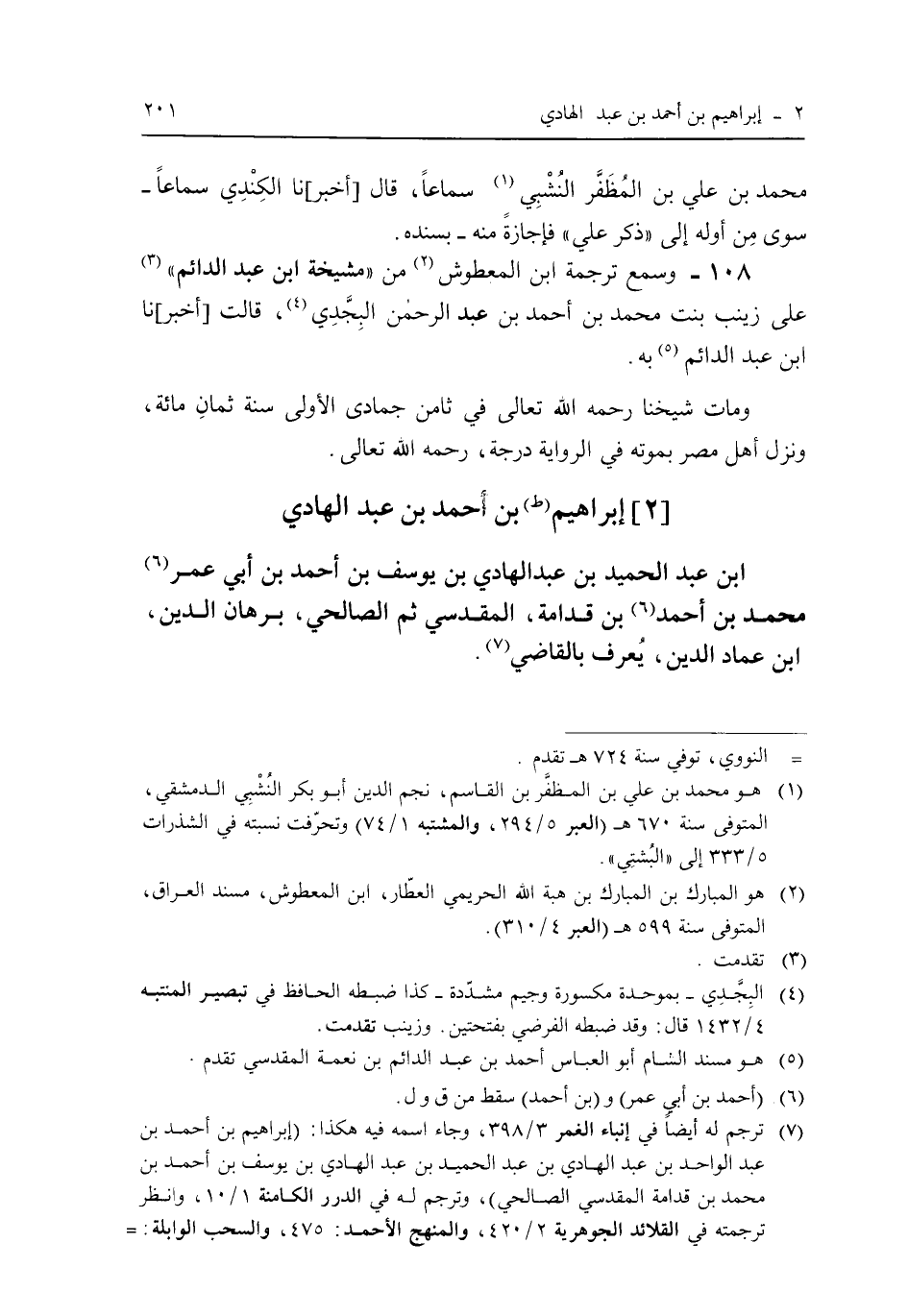 [2] إبراهيم بن أحمد بن عبد الهادى