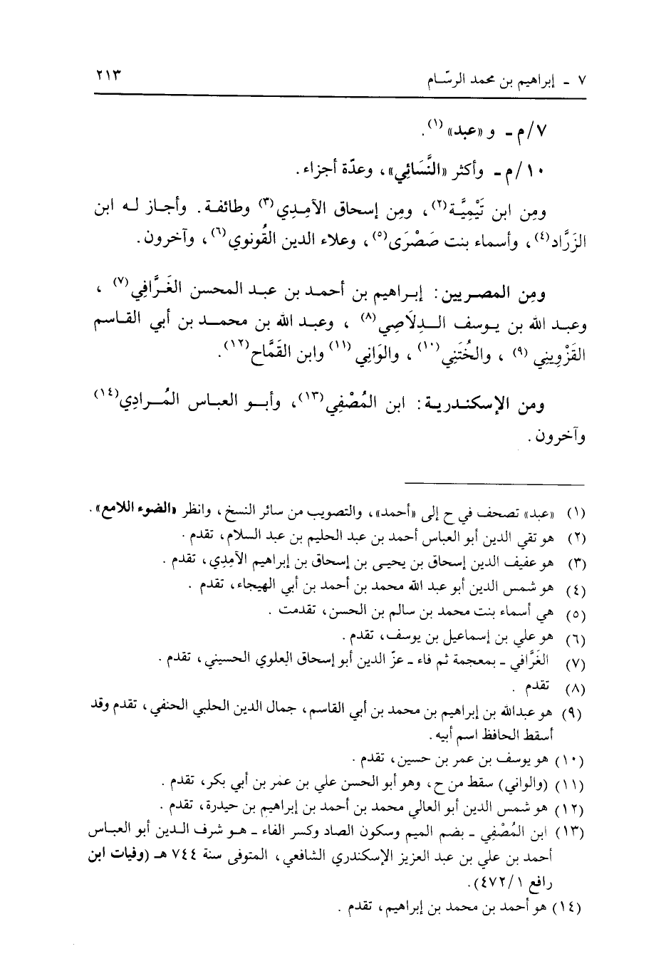 ومن المصريين: إبراهيم بن أحمد بن عبد المحسن الغرافى، وعبد الله بن يوسف الدلاصى، وعبد الله بن محمد بن أبى القاسم القزويني، والختنى، والوانى وابن القماح.