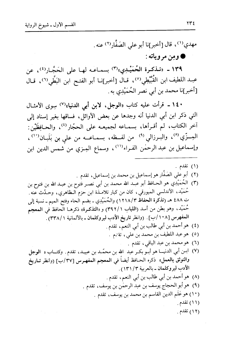 139 - "تذكرة الحميدى" بسماعه لها على الحجار، عن عبد اللطيف ابن القبيطى، قال [أخبر] نا ابو الفتح ابن البطى، قال [أخبر] نا محمد بن أبى نصر الحميدى به.