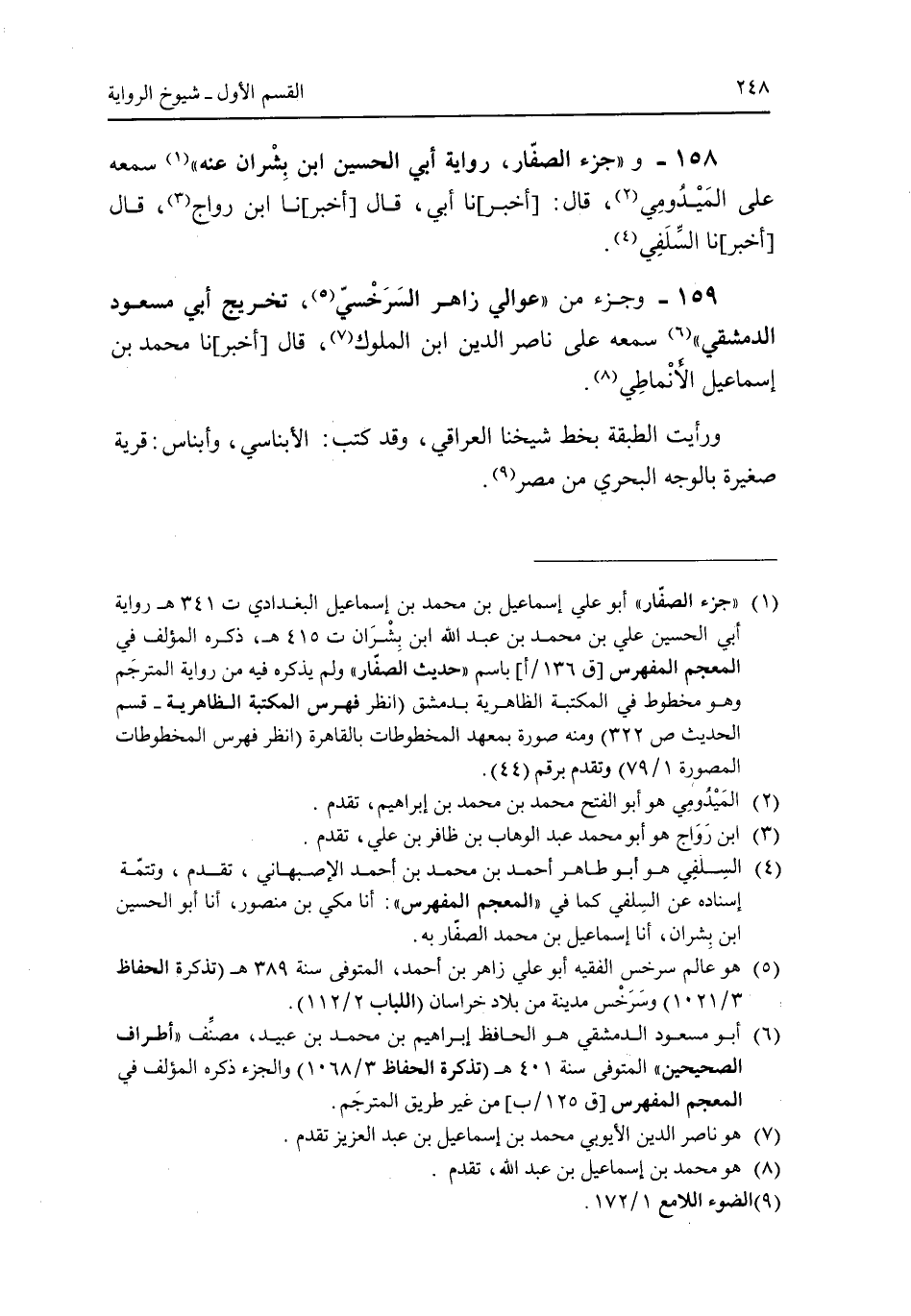 158 - و"جزء الصفار، رواية أبى الحسين ابن بشران عنه" سمعه على الميدومي، قال [أخبر] نا أبى، قال [أخبر] نا ابن رواج، قال [أخبر] نا السلفي.