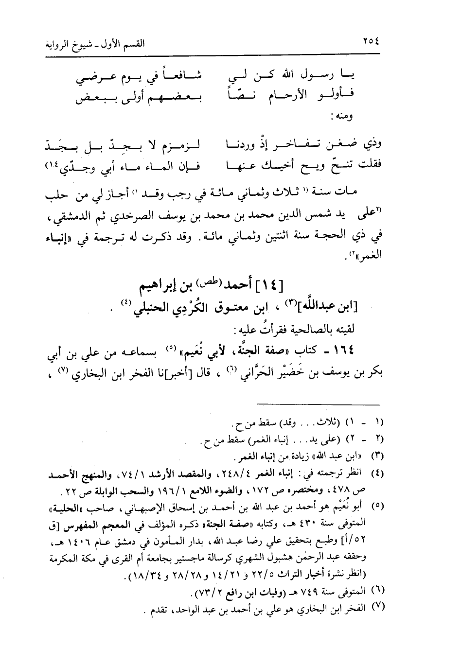 164 - كتاب "صفة الجنة، لأبى نعيم" بسماعه من على بن ابى بكر بن يوسف بن خضير الحرانى، قال [أخبر] نا الفخر ابن البخاري،
