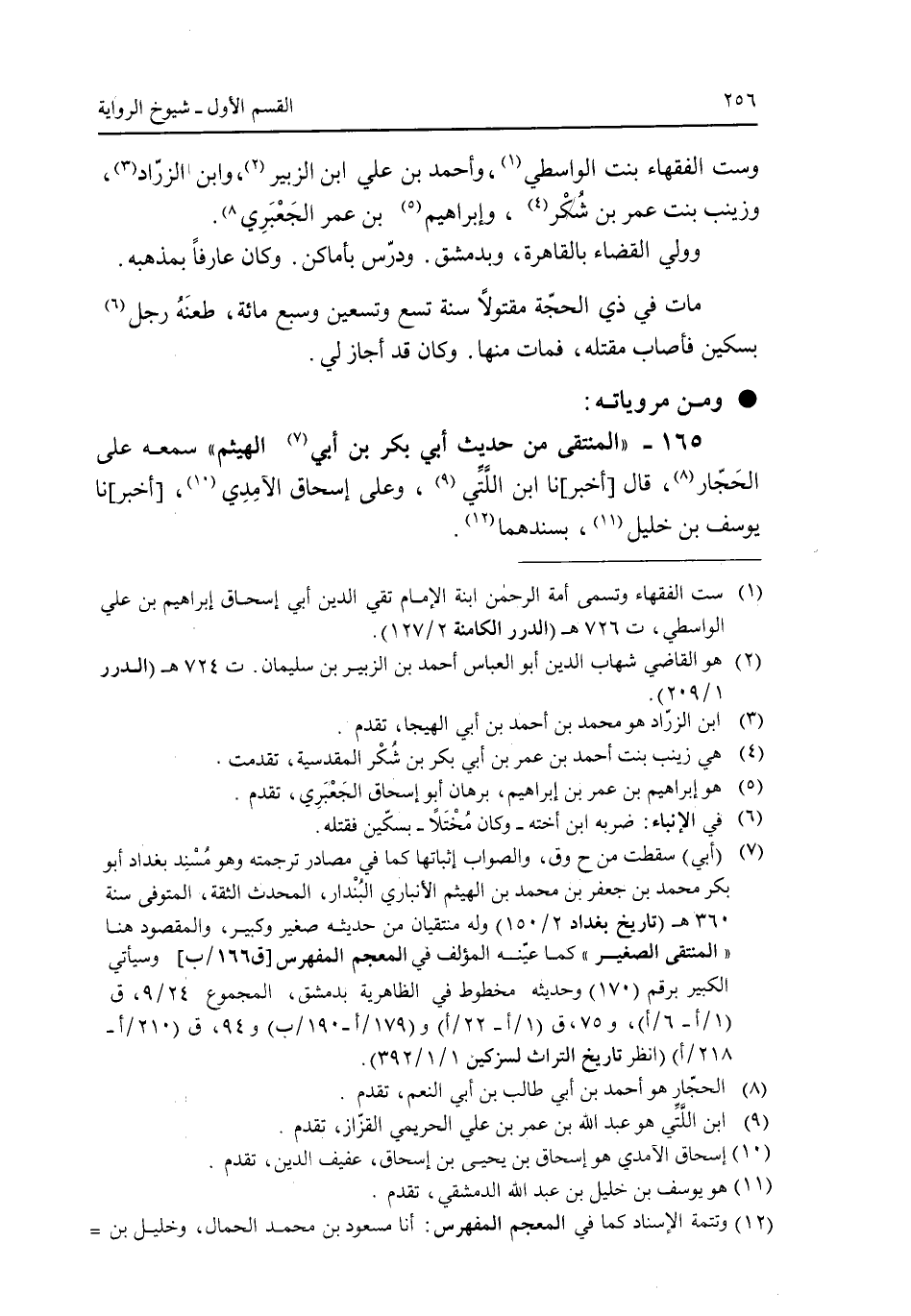 165 - "المنتقى من حديث أبى بكر بن أبى الهيثم" سمعه على الحجار، قال [أخبر] نا ابن اللتى، وعلى إسحاق الآمدي، قال [أخبر] نا يوسف بن خليل، بسندهما.
