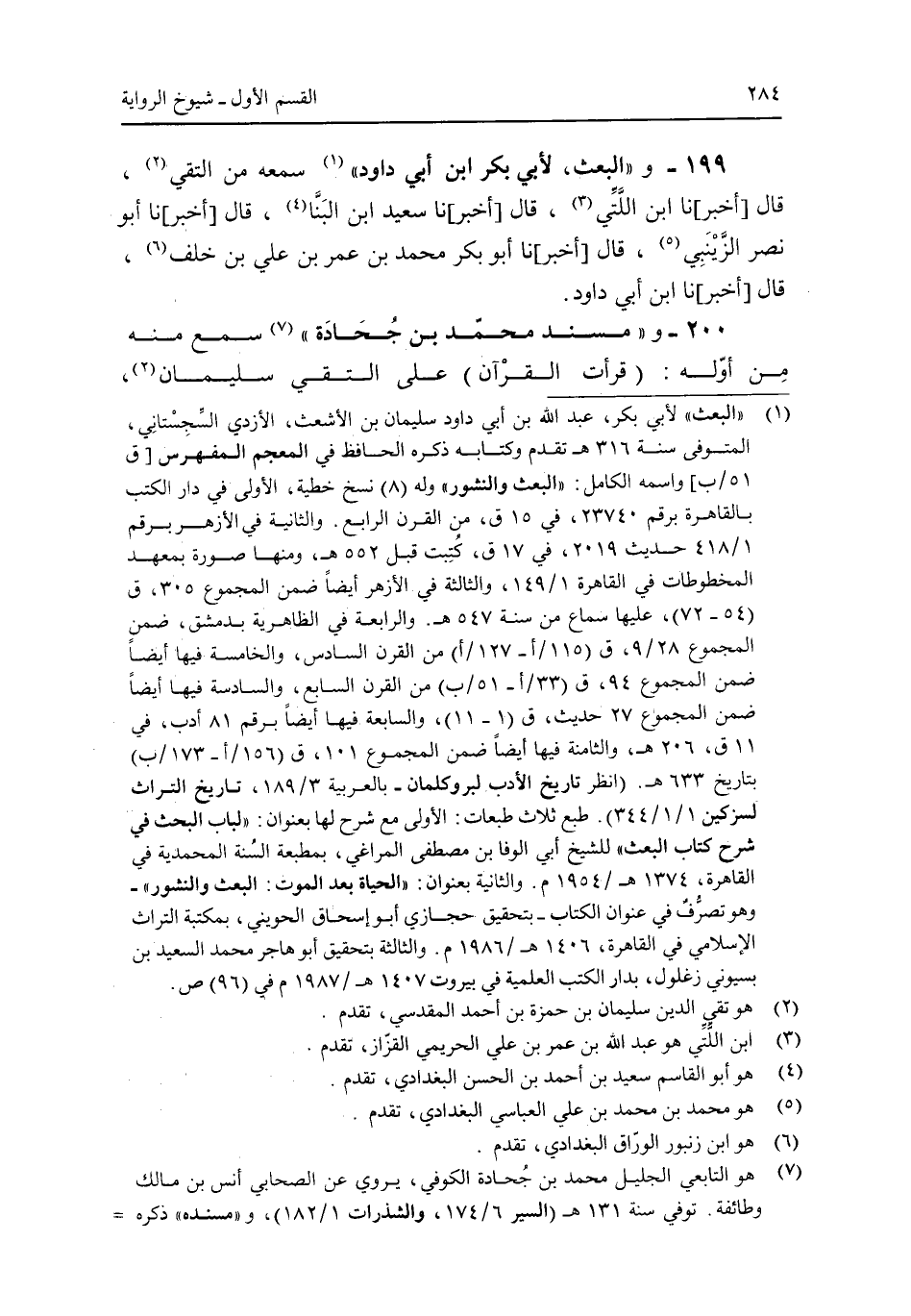 199 - و"البعث، لأبى بكر ابن أبى داود" سمعه من التقى، قال [أخبر] نا ابن اللتى، قال [أخبر] نا سعيد ابن البنا، قال [أخبر] نا أبو نصر الزينبى، قال [أخبر] نا أبو بكر محمد بن عمر بن على بن خلف، قال [أخبر] نا ابن أبى داود.