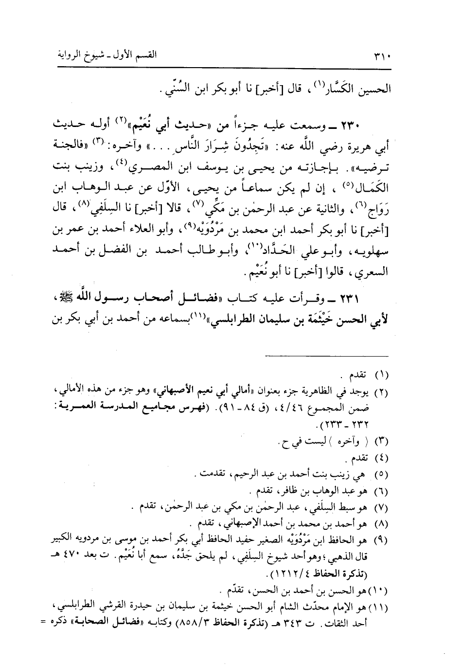 231 - وقرأت عليه كتاب "فضائل أصحاب رسول الله صلى الله عليه وسلم، لأبى الحسن خثيمة بن سليمان الطرابلسى" بسماعه من أحمد بن أبي بكر بن