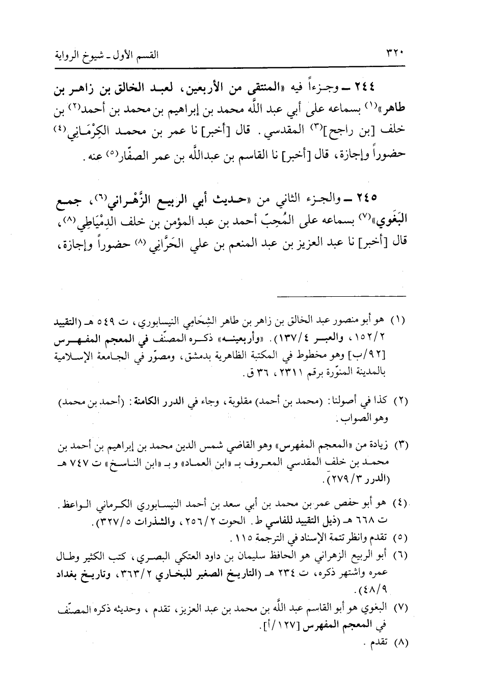 244 - وجزءا فيه "المنتقى من الأربعين، لعبد الخالق بن زاهر بن طاهر" بسماعه على عبد الله بن إبراهيم بن محمد بن أحمد بن خلف [بن راجح] المقدسى. قال [أخبر] نا عمر بن محمد الكرمانى حضورا وإجازة، قال [أخبر] نا القاسم بن عبد الله بن عمر الصفار عنه.