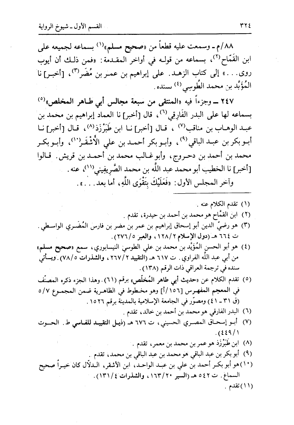 88/م - وسمعت عليه قطعا من "صحيح مسلم" بسماعه لجميعه على ابن القماح، بسماعه من قوله فى أواخر المقدمة: "فمن ذلك أن أيوب روى ... " إلى كتاب الزهد. على إبراهيم بن عمر بن مضر، [أخبر] نا المؤبد بن محمد الطوسى بسنده.