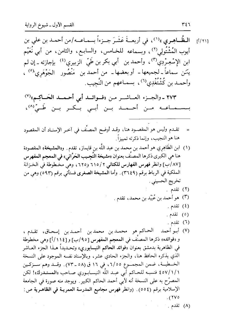 273 - والجزء العاشر من "فوائد أبى أحمج الحاكم" بسماعه من أحمد بن أبي بكر بن طي،