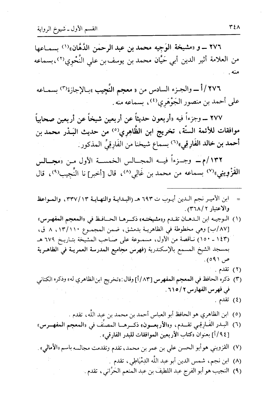 276 - و"مشيخة الوجيه محمد بن عبد الرحمن الدهان" بسماعها من العلامة أثير الدين أبى حيان بن يوسف بن على النحوى، بسماعه منه.