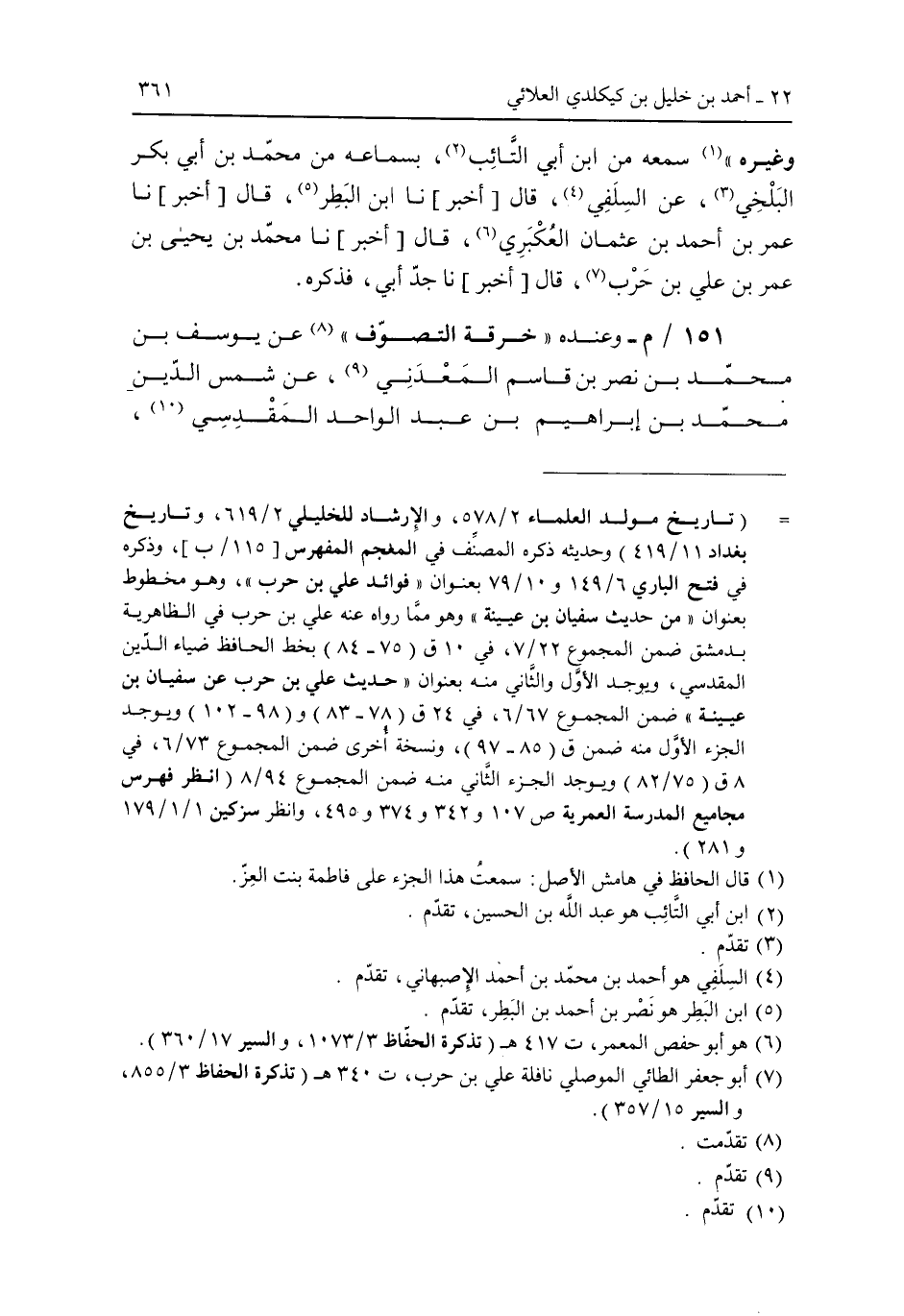وغيره" سمعه من ابن أبى التائب، بسماعه من محمد بن أبى بكر البلخى، عن السلفي، قال [أخبر] نا ابن البطر، قال [أخبر] نا عمر بن أحمد بن عثمان العكبرى، قال [أخبر] نا محمد بن يحيى بن عمر بن على بن حرب، قال [أخبر] نا جد أبى، فذكره.