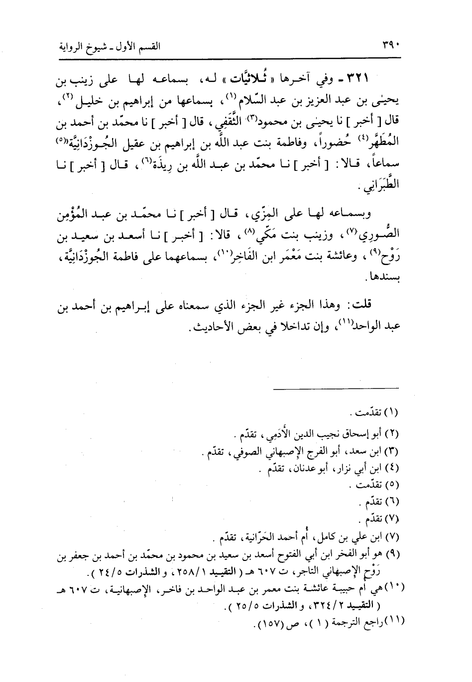 321 - وفي آخرها "ثلاثيات" له، بسماعه لها على زينب بن يحيى بن عبد العزيز بن عبد السلام، بسماعها من إبراهيم بن خليل، قال [أخبر] نا يحيى بن محمود الثقفى، قال [أخبر] نا محمد بن أحمد بن المطهر حضورا، وفاطمة بنت عبد الله بن إبراهيم بن عقيل الجوزدانية سماعا، قالا: [أخبر] نا محمد بن عبد الله بن ريذة، قال [أخبر] نا الطبرانى.