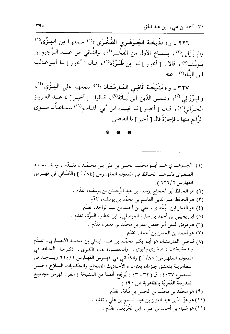 327 - و"مشيخة قاضى المارستان" سمعها على المزى، والبرزالي، وشمس الدين ابن نباته، قالوا: [أخبر] نا عبد العزيز الحرانى، قال [أخبر] نا ضياء ابن أبى القاسم سماعا - سوى الرابع منها - فإجازة قال [أخبر] نا القاضي.