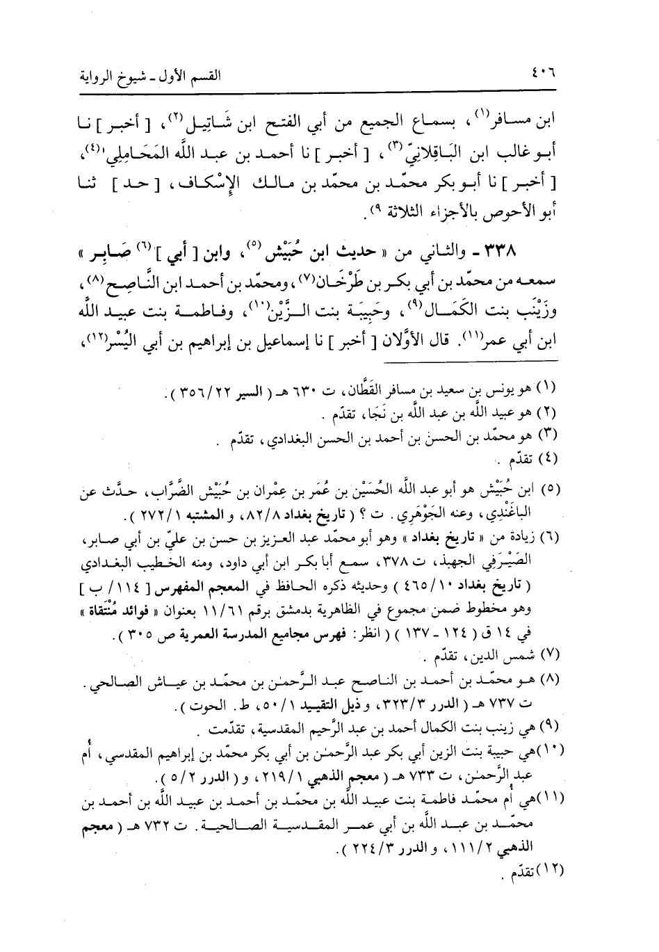 338 - والثانى من "حديث ابن حبيش، وابن [أبى] صابر" سمعه من محمد بن أبى بكر بن طرخان، ومحمد بن أحمد ابن الناصح، وزينب بنت الكمال، وحبيبة بنت الزين، وفاطمة بنت عبيد الله ابن أبى عمر. قال الأولان [أخبر] نا إسماعيل بن إبراهيم بن أبي اليسر،